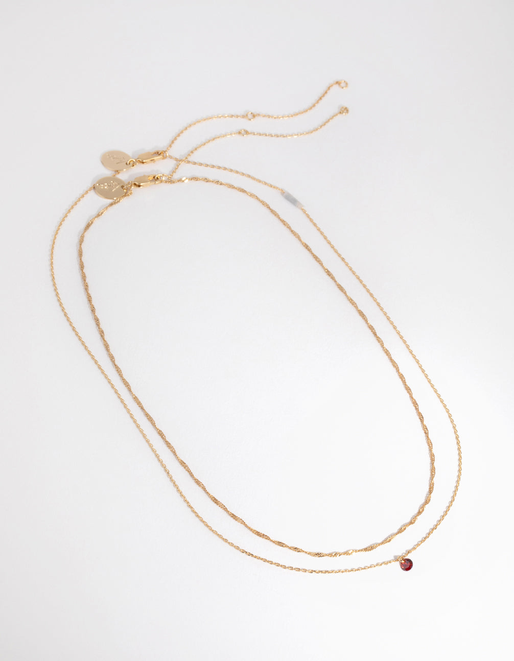 18ct Gold Plated January Garnet Cubic Zirconia Necklace Set