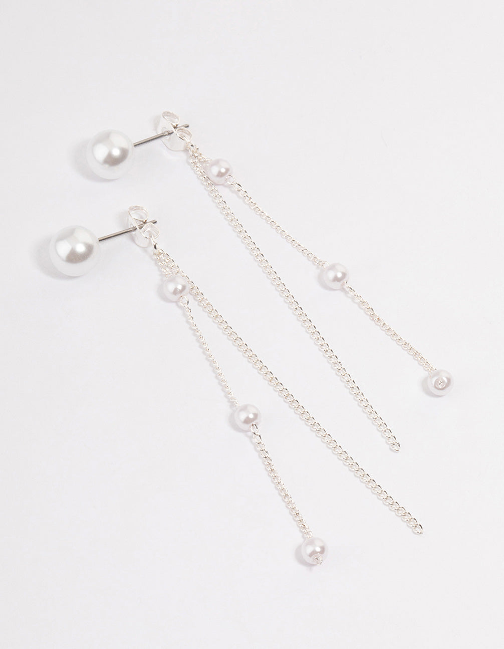 Silver Pearl Cup Chain Sandwich Drop Earrings
