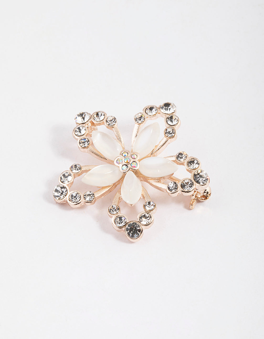 - Style this rose gold-toned open flower brooch with some adorning accessories from our Rose Gold Collection!