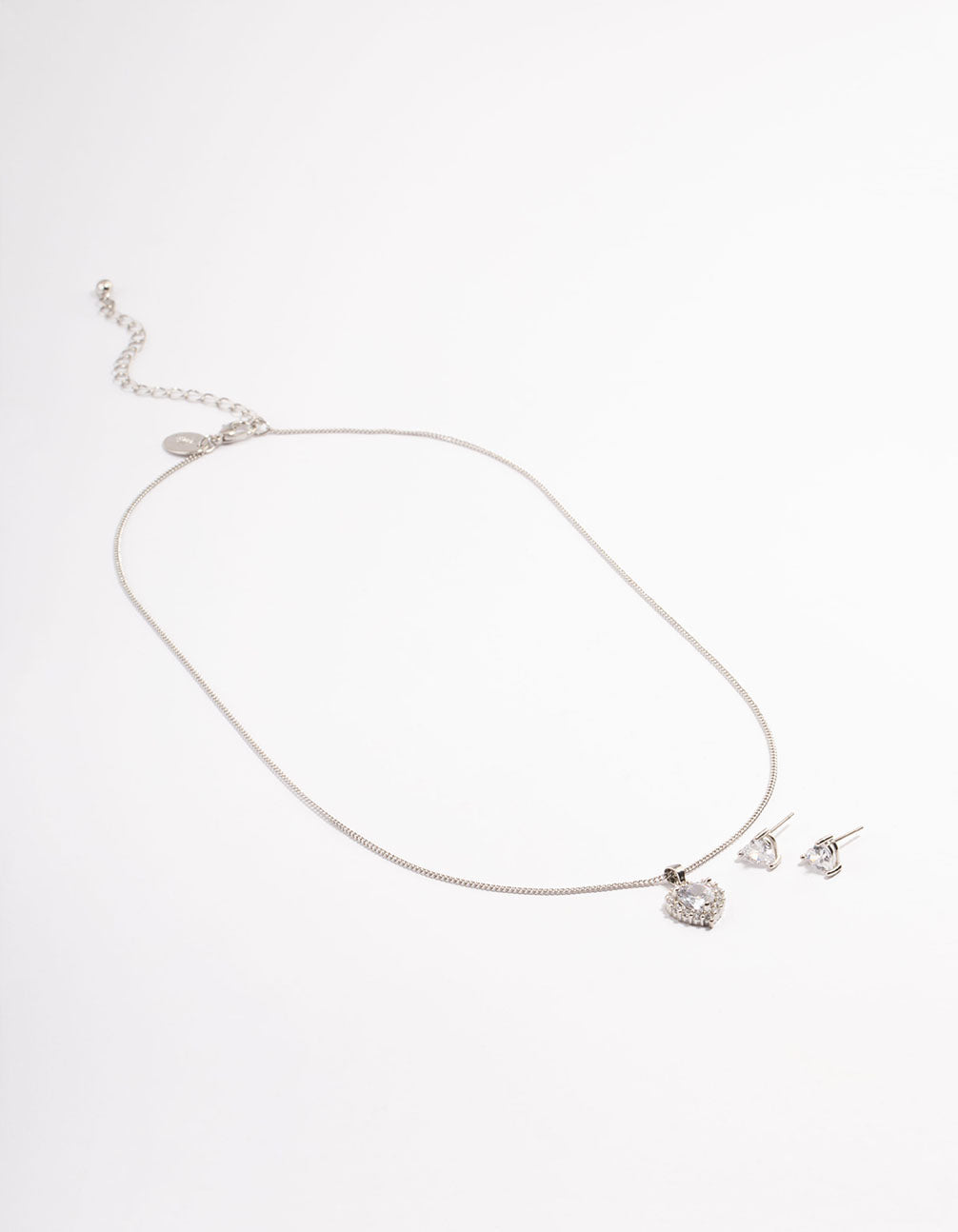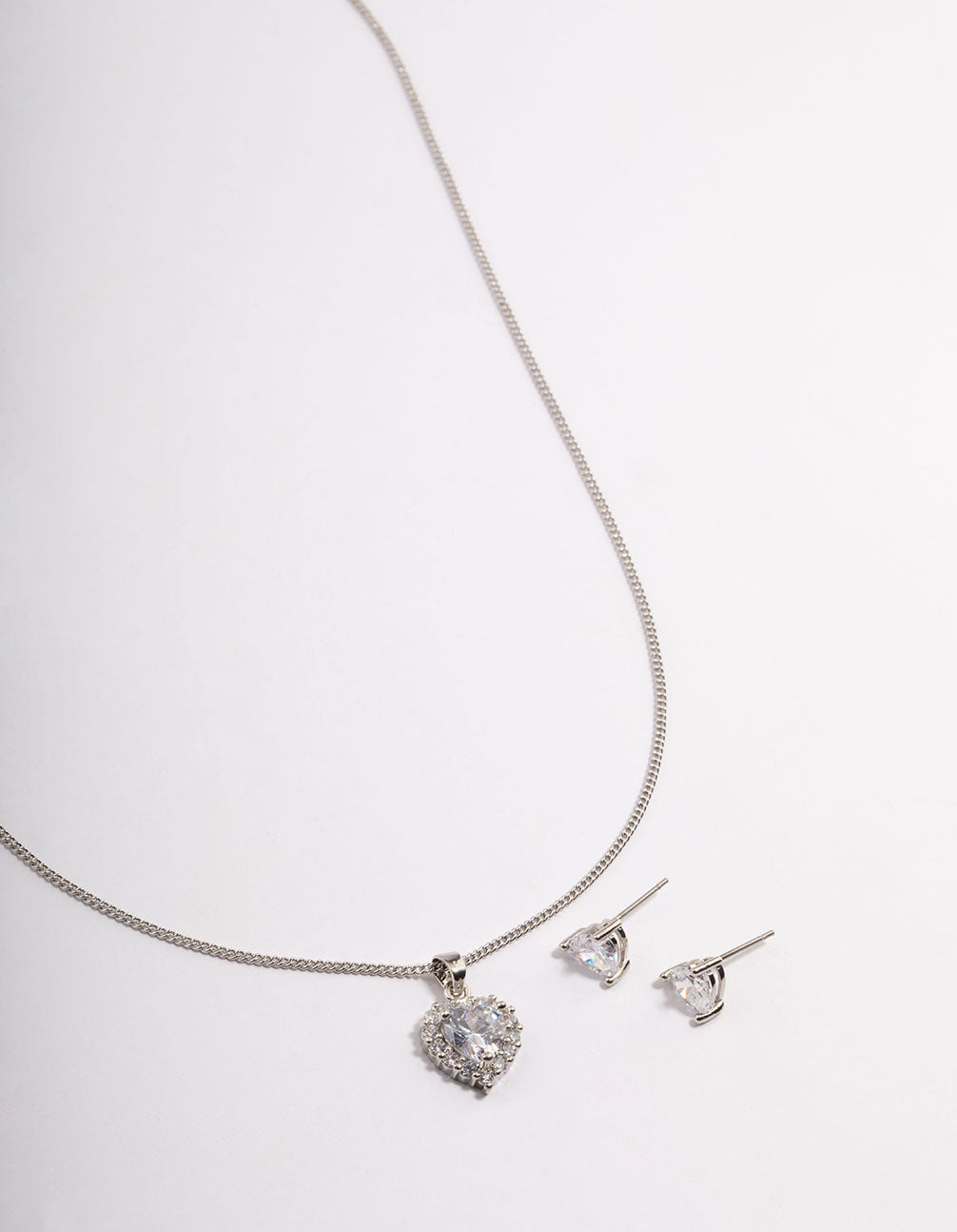 Silver Cubic Zirconia Halo Heart Earrings & Necklace Set Silver Cubic Zirconia Halo Heart Earrings & Necklace Set Silver Cubic Zirconia Halo Heart Earrings & Necklace Set