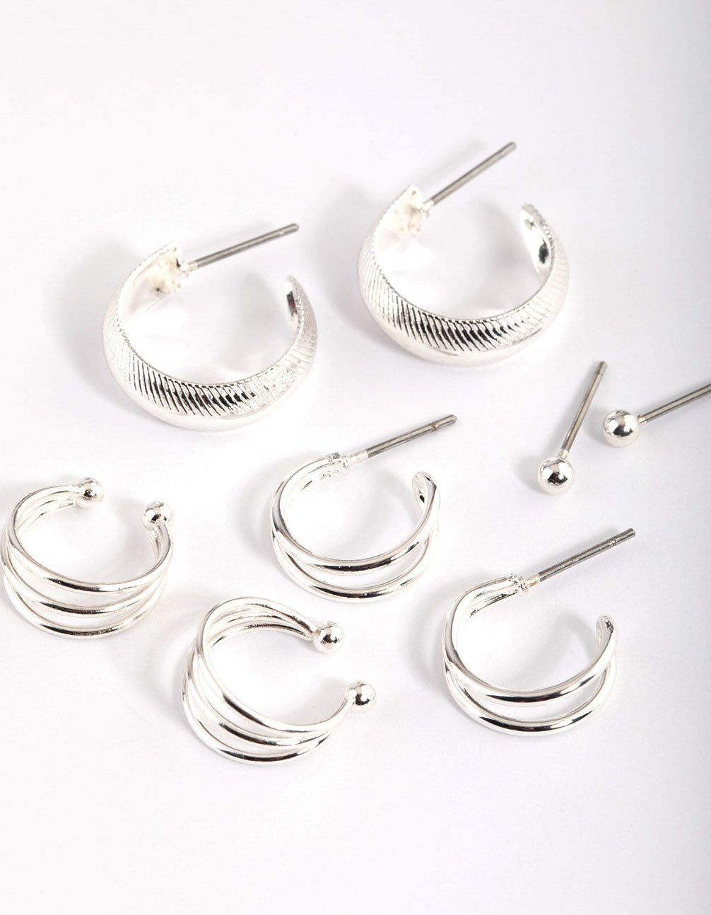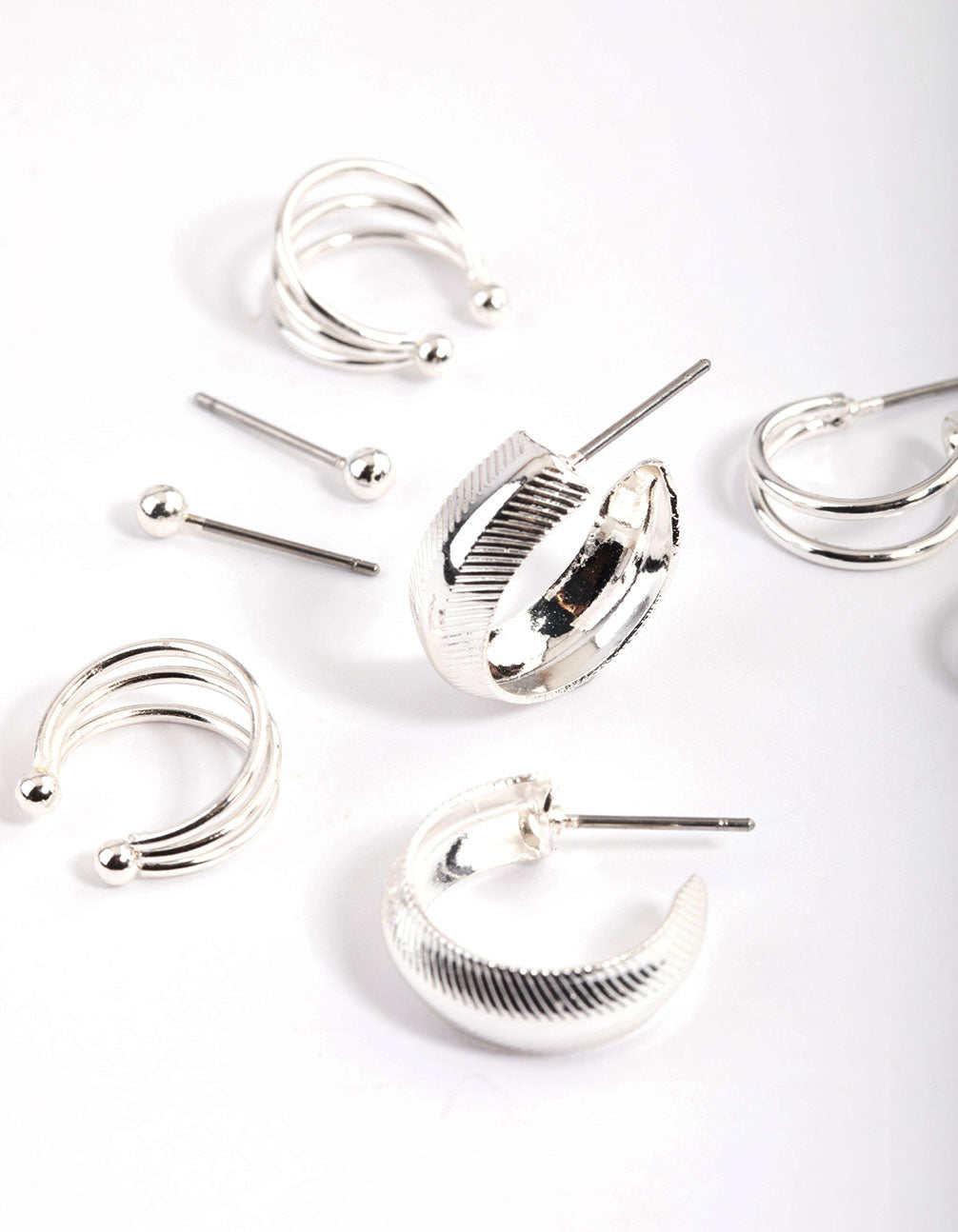 Silver Bevelle & Cuff Earrings 4-Pack Silver Bevelle & Cuff Earrings 4-Pack Silver Bevelle & Cuff Earrings 4-Pack