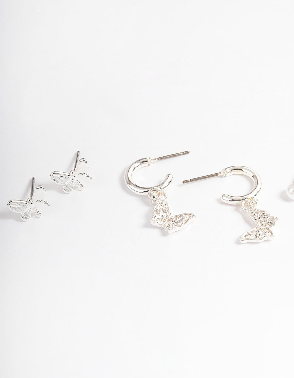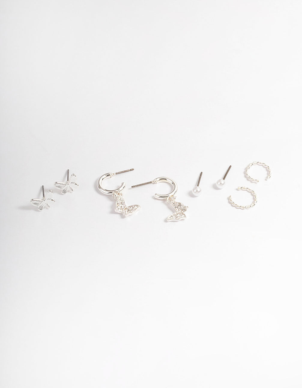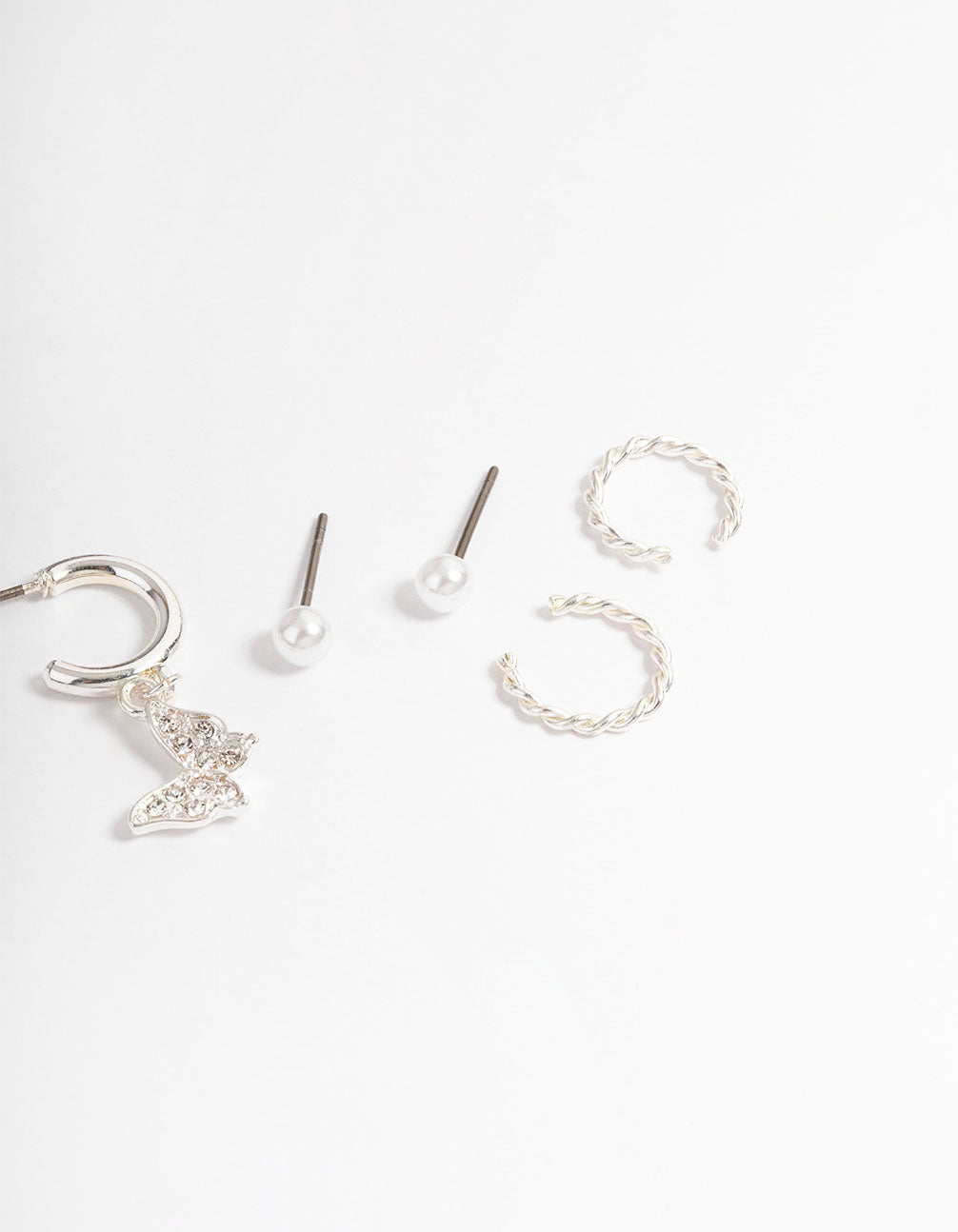 Silver Crystal Butterfly & Pearl Earrings 4-Pack