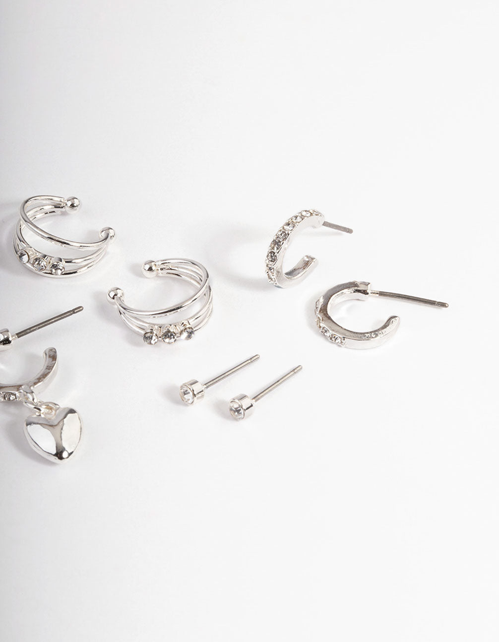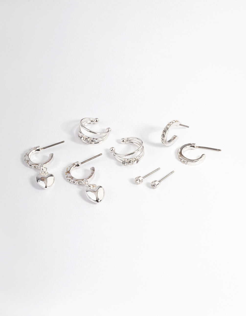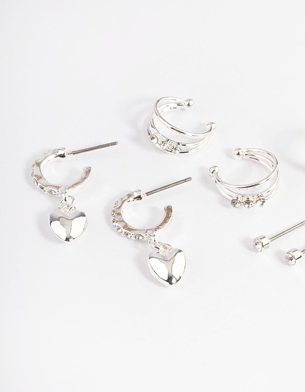 Silver Crystal Puffed Heart Earrings 4-Pack