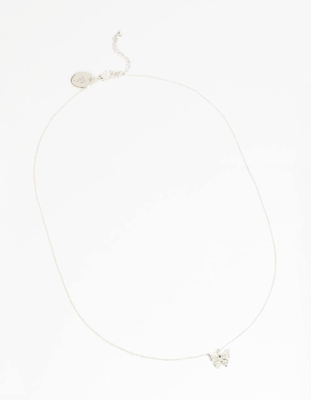 This pretty pendant necklace is perfect for daily wear! It features a pretty butterfly design on a fine silver-toned chain. Layer it with other chains for maximum impact!
