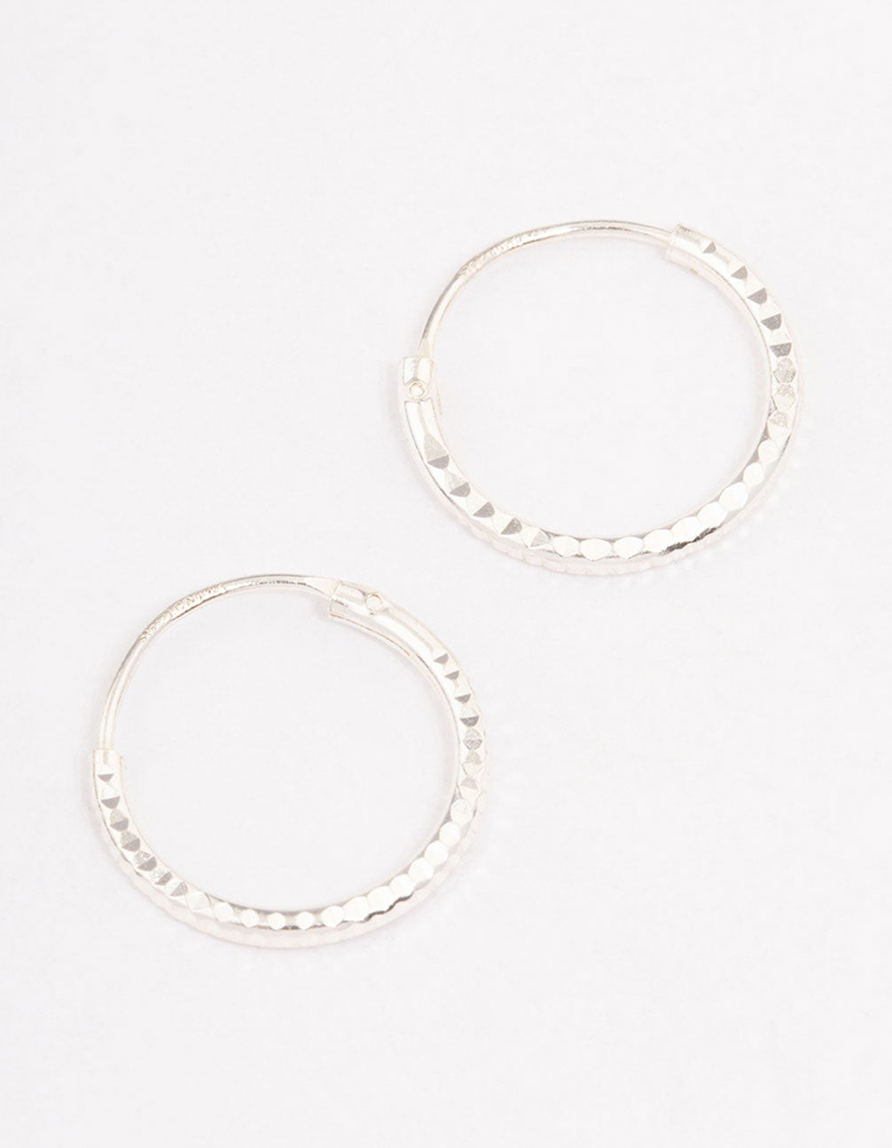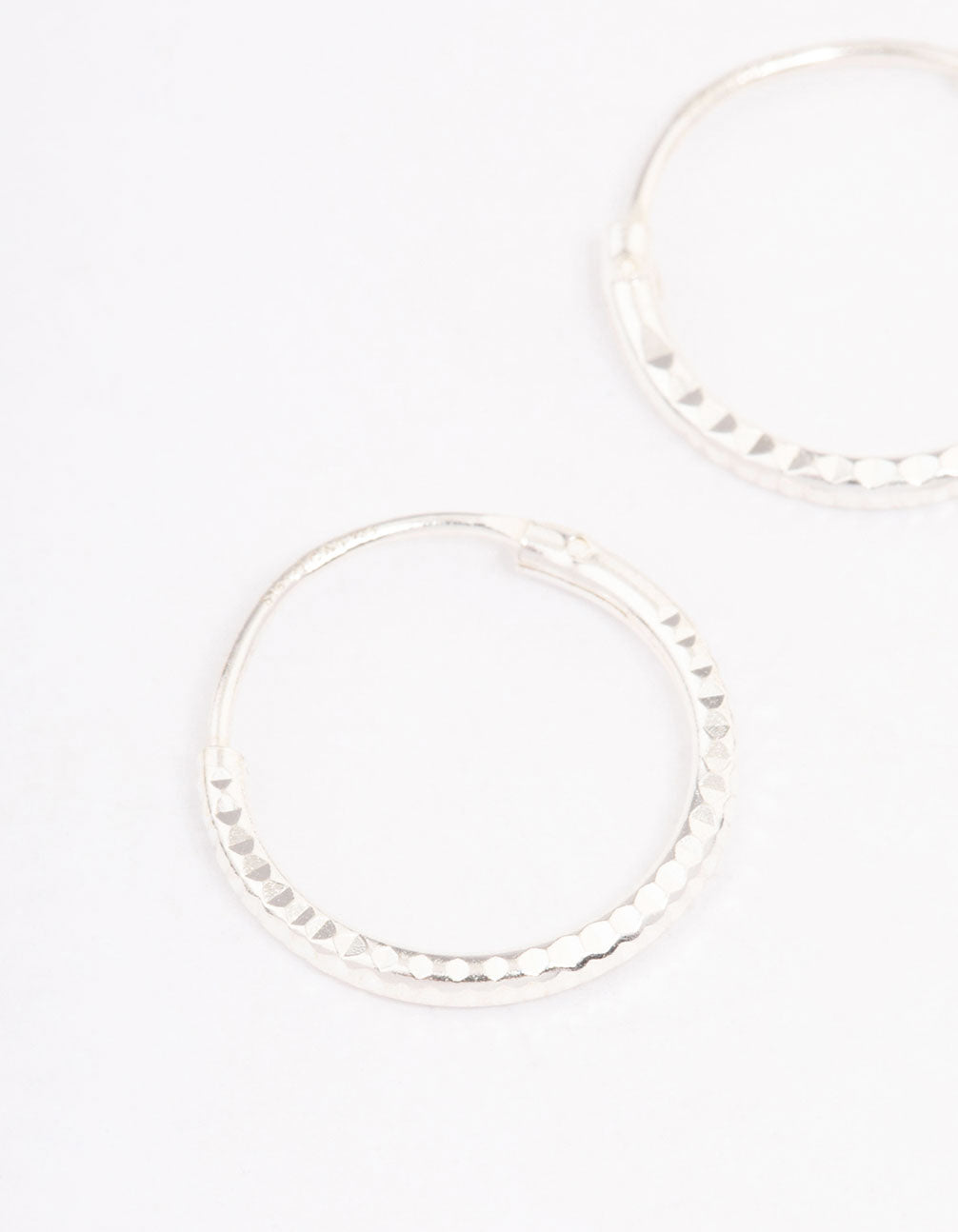 - This set of staple sterling silver hoop earrings features a dainty and fine profile with a subtle diamante accent, perfect for styling in your everyday stack.