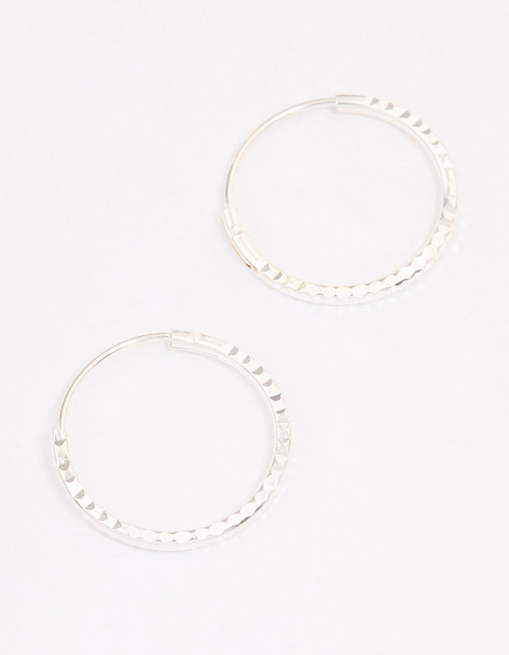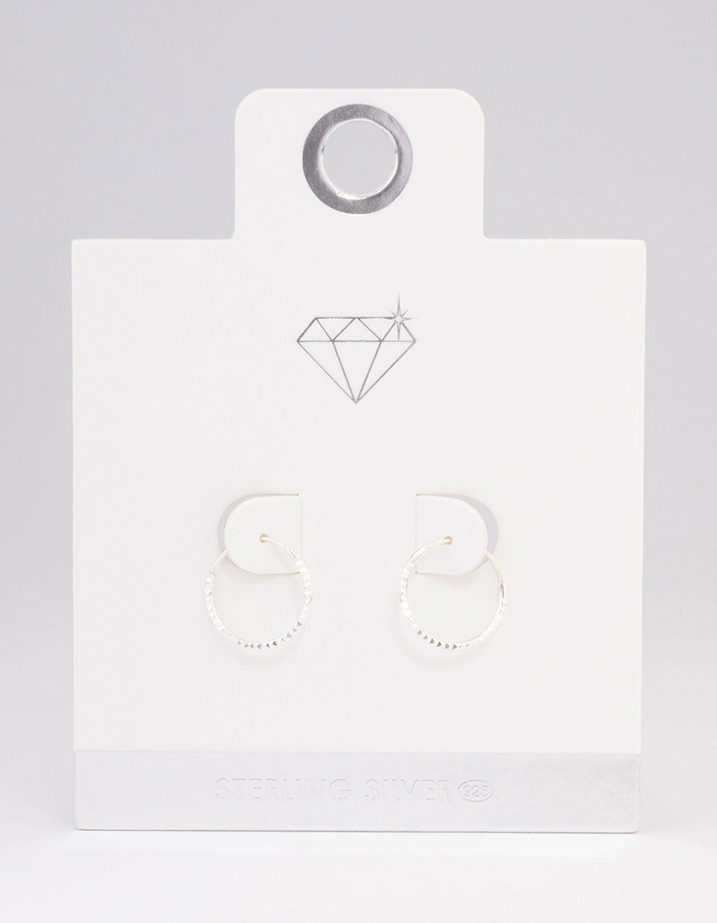 - This set of sterling silver hoop earrings features delicate diamante embellished for a hint of sparkle.
