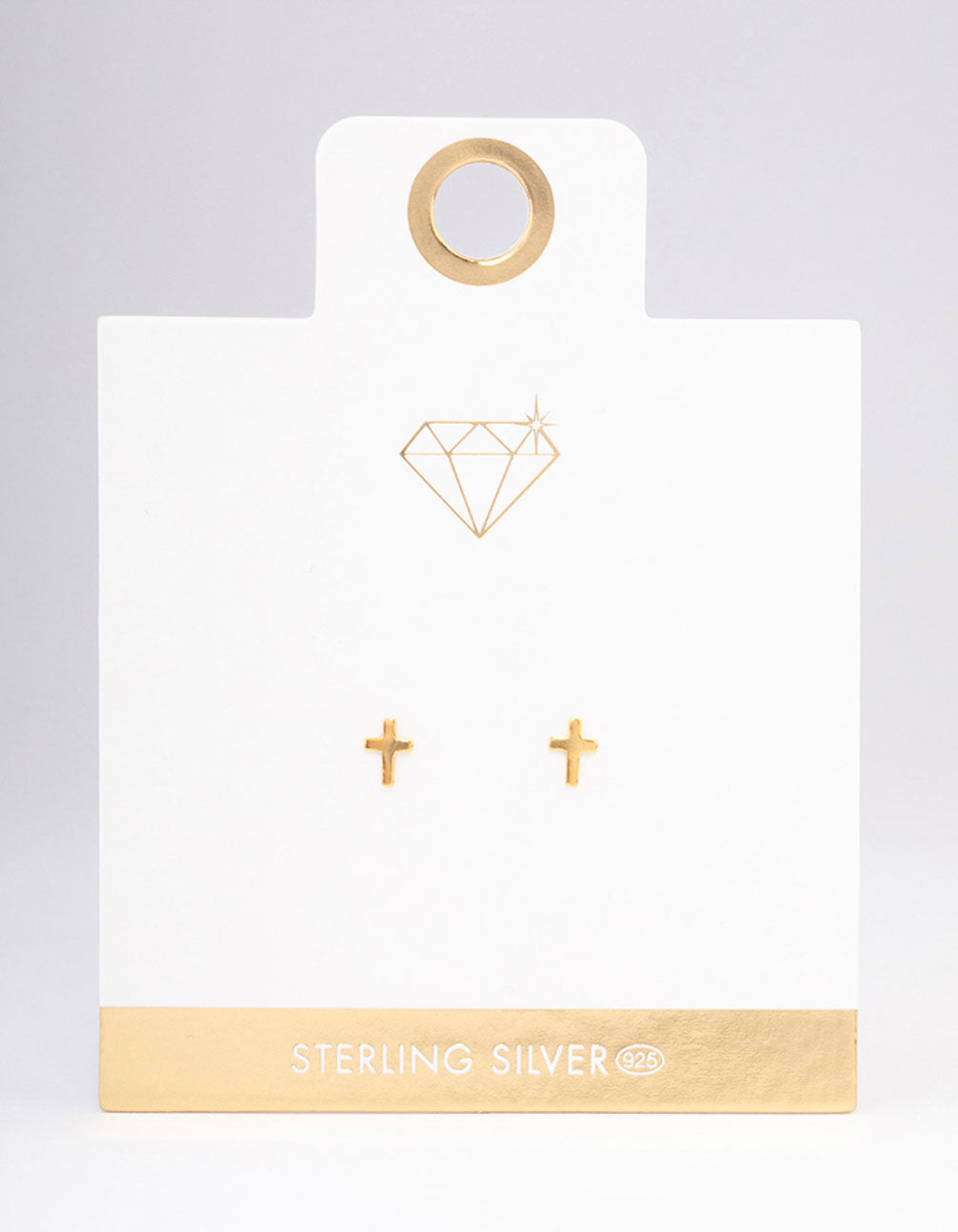 Gold Plated Sterling SIlver Mini Cross Stud Earrings
