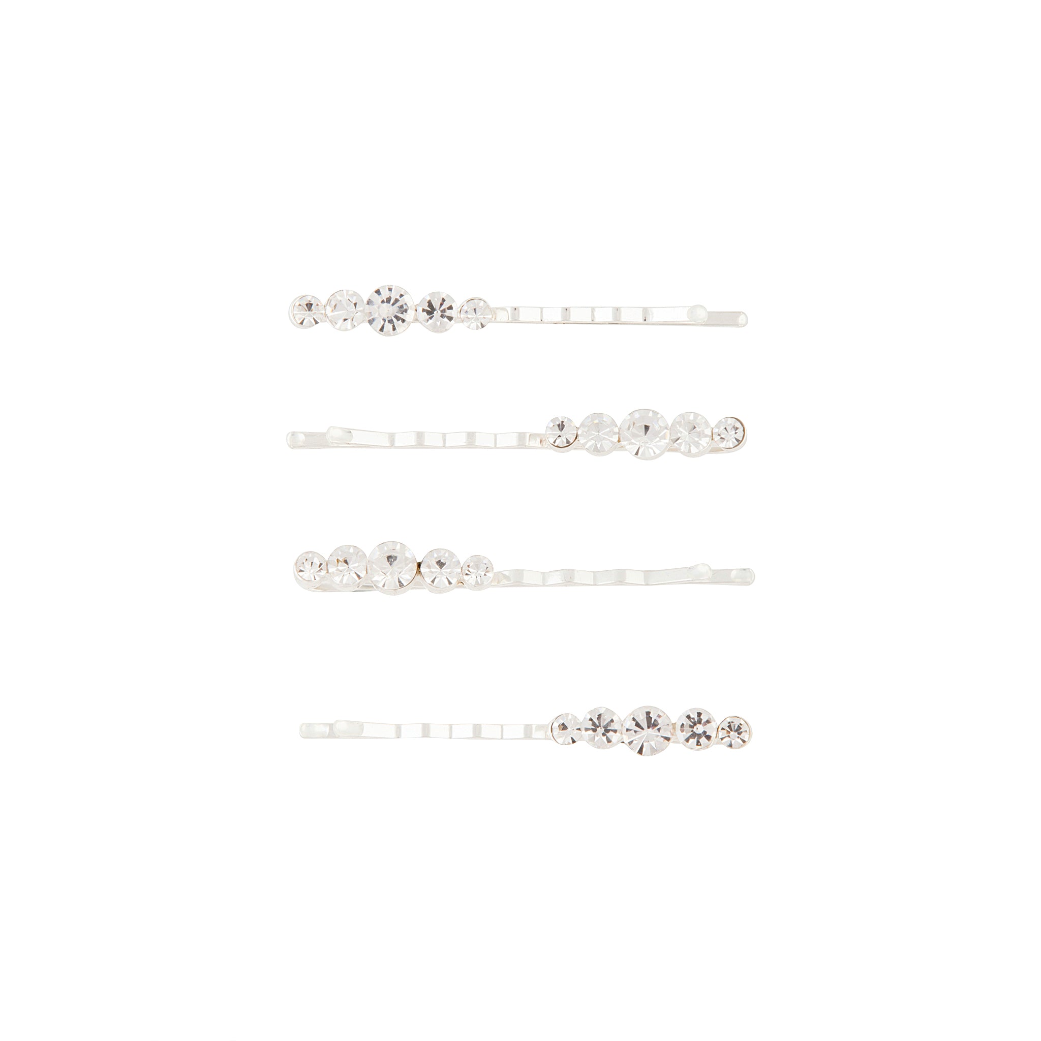 This four pack of bobby pins are as functional as they are stylish. They boast a graduating diamante design in a silver tone.