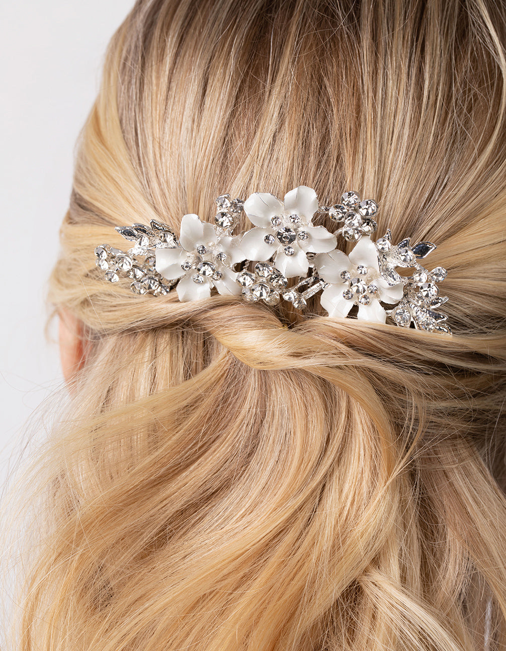 Whether you are heading to a wedding or just wanting to look glamorous for a party, this hair accessory is the perfect way to complete your event ensemble! Inspired by the natural beauty of a flower, this diamante clip with faux pearl floral accents is a whimsical addition to any hairstyle. Sweep hair into an evening look and secure with hairspray before sliding this comb into place to make you feel gorgeous all night long.