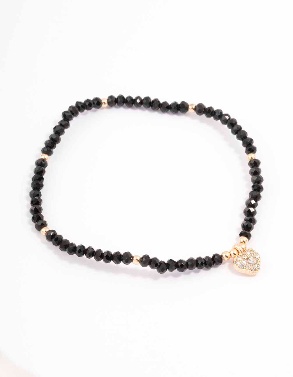 Black Beaded Simple Toggle Heart Charm Bracelet