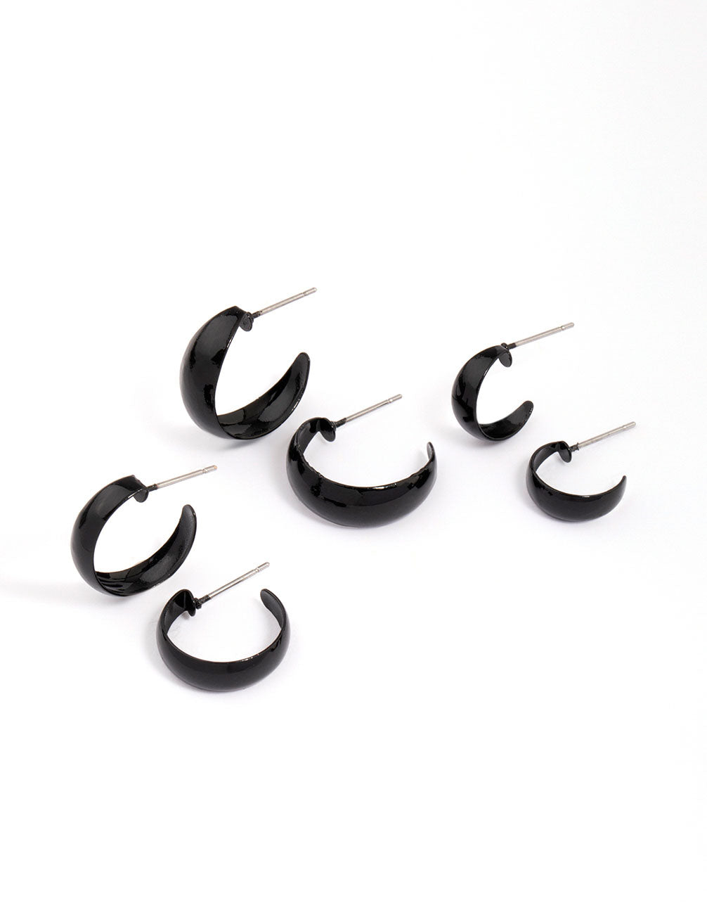 These chunky hoop earrings feature a bold design and shiny black finish, perfect for elevating an everyday outfit.