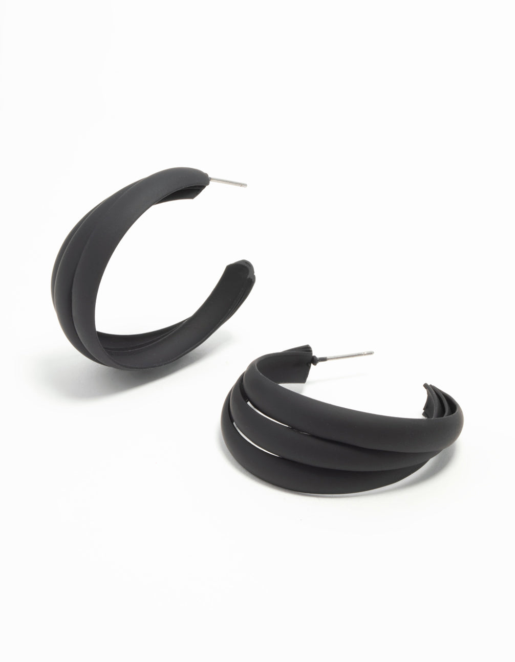 Black Coated Metal Ridge Hoop Earrings