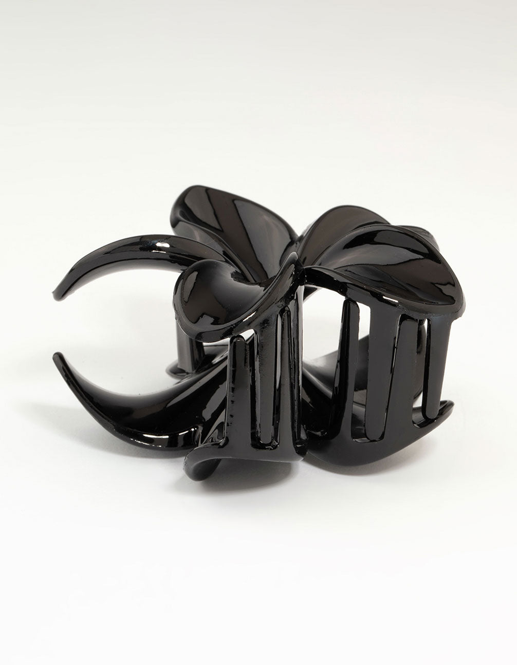 Add an edgy twist to your style with this fun claw clip! Featuring a black frangipani flower design, it adds some floral flair to your everyday look.