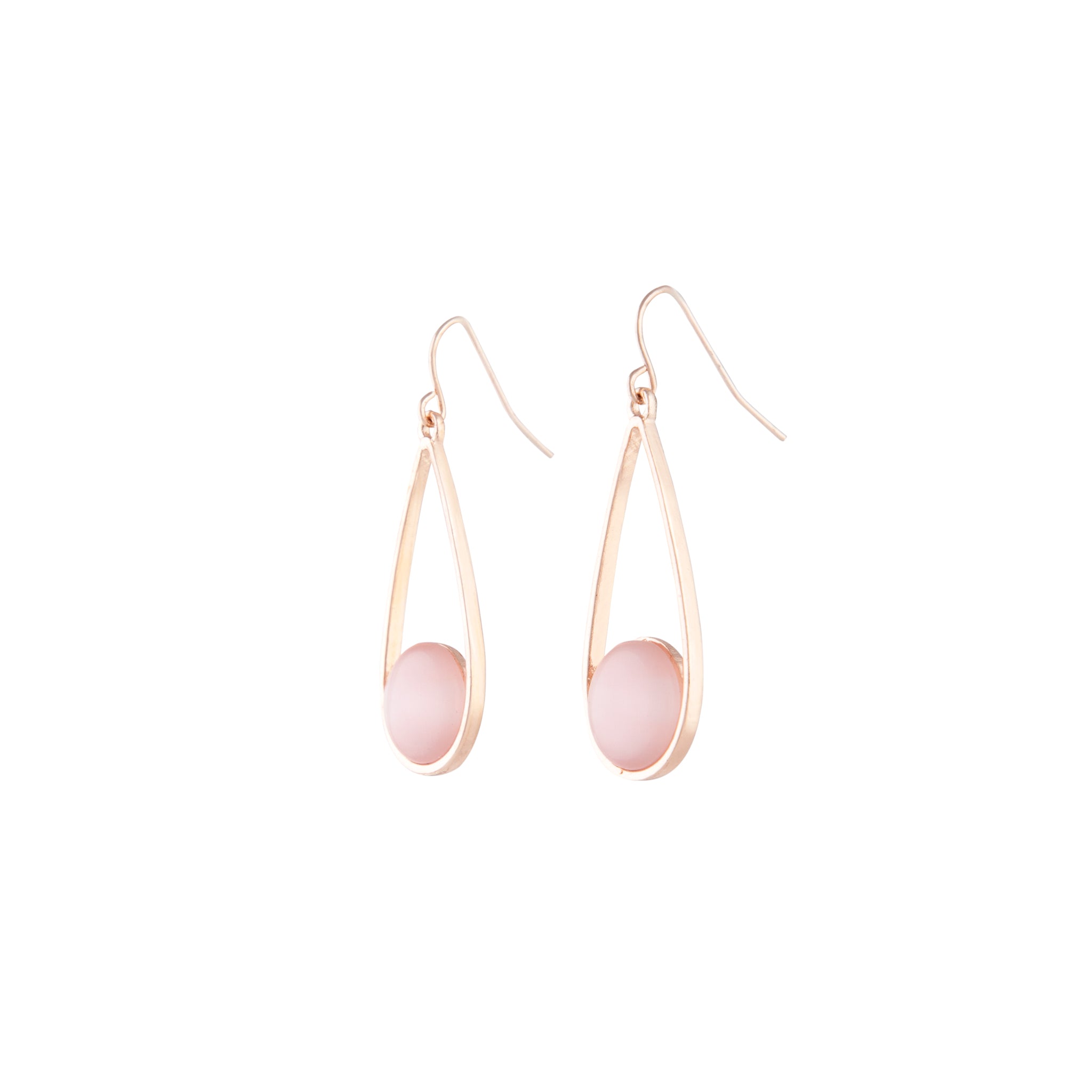 Rose gold toned pieces add a touch of feminine luxury to your looks. This classic rose-gold-toned style will make the perfect addition to your daily collection. This elegant pair of drop earrings feature a pink cat eye gem design. Style with dainty rose gold accessories for a prim and proper finish.