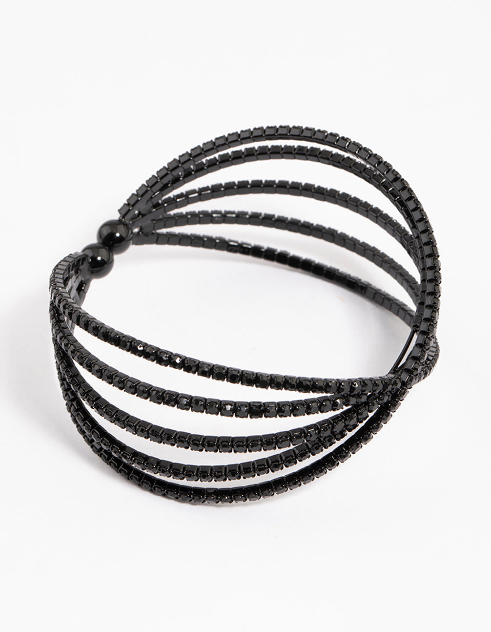 Coated Black Triple Row Criss Cross Cuff Bangle