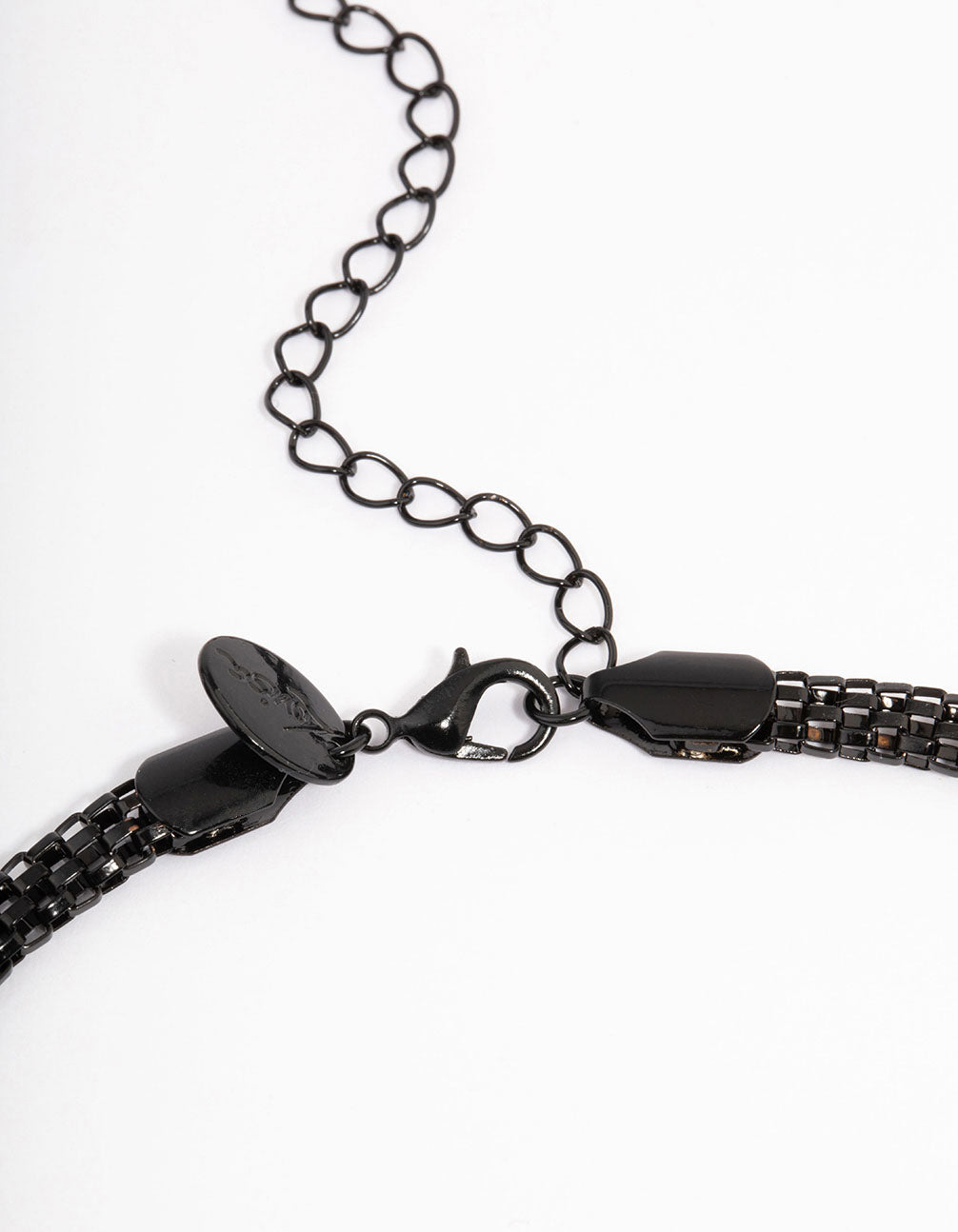 - This Gold & Black Flower Cupchain Choker Necklace features a large, black fabric flower embellished with strands of waterfall diamantes for an elevated look.