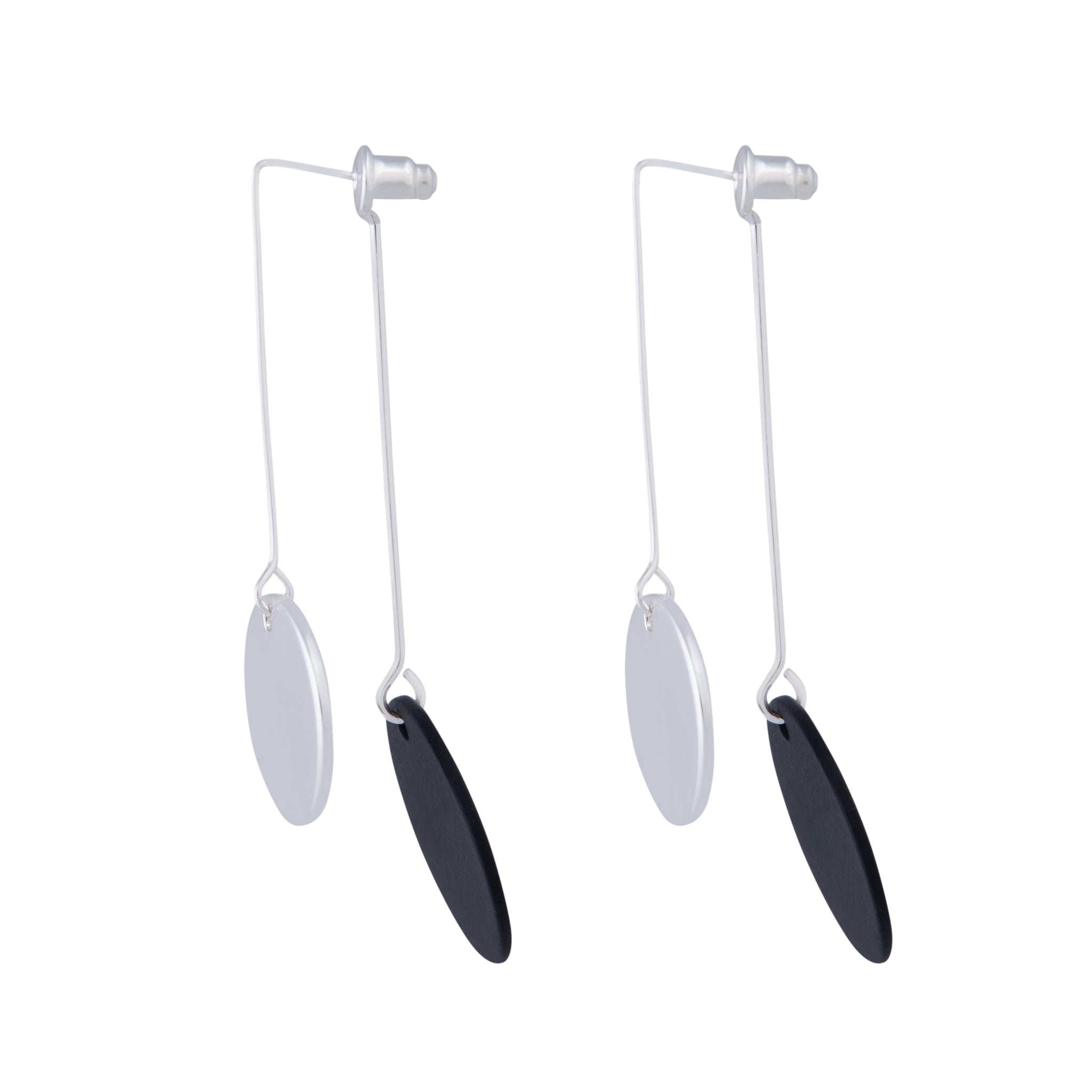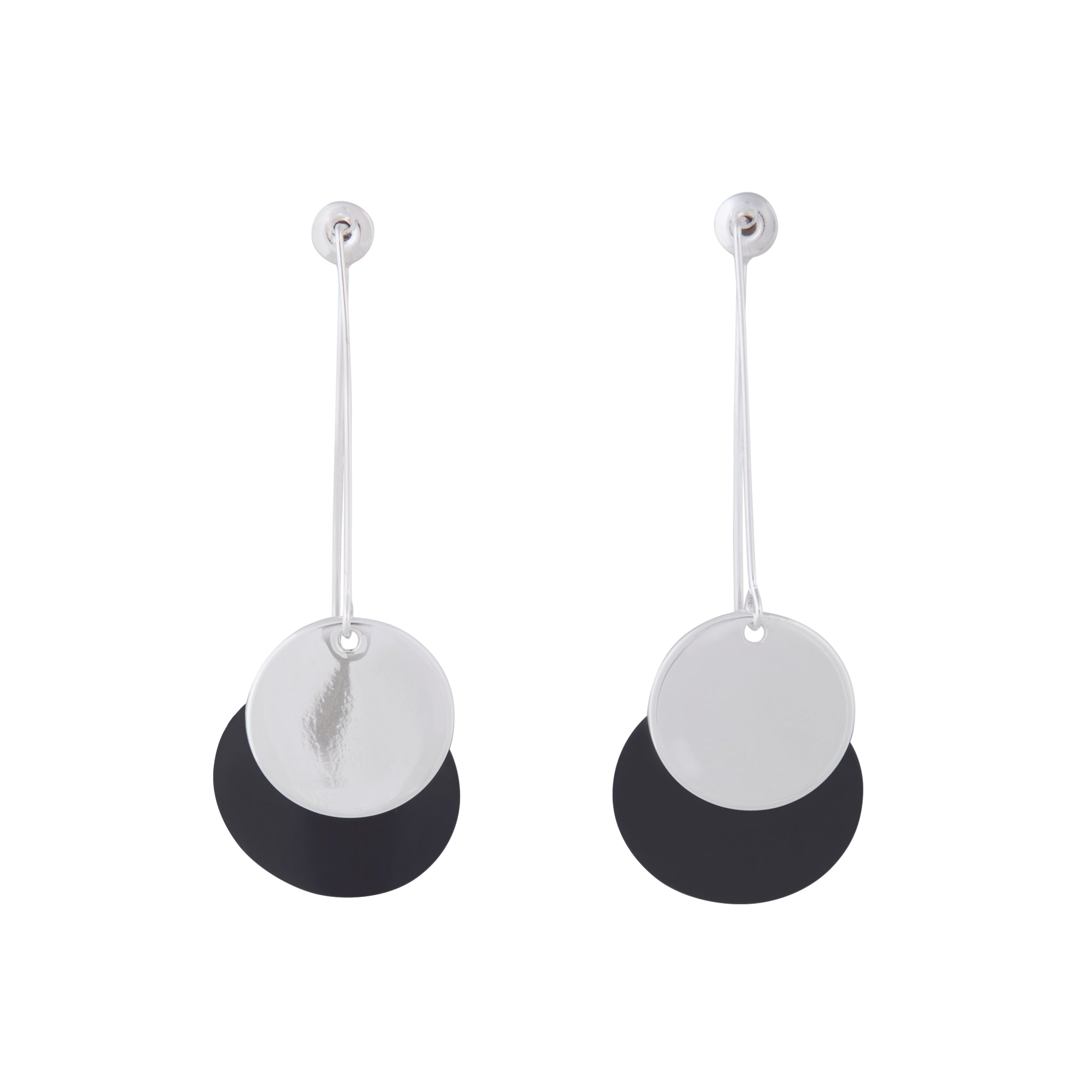 Hypnotize in these contrastingåÊpendulum earrings with polished silver-tones and matte black discs suspended on two solid metal bars.