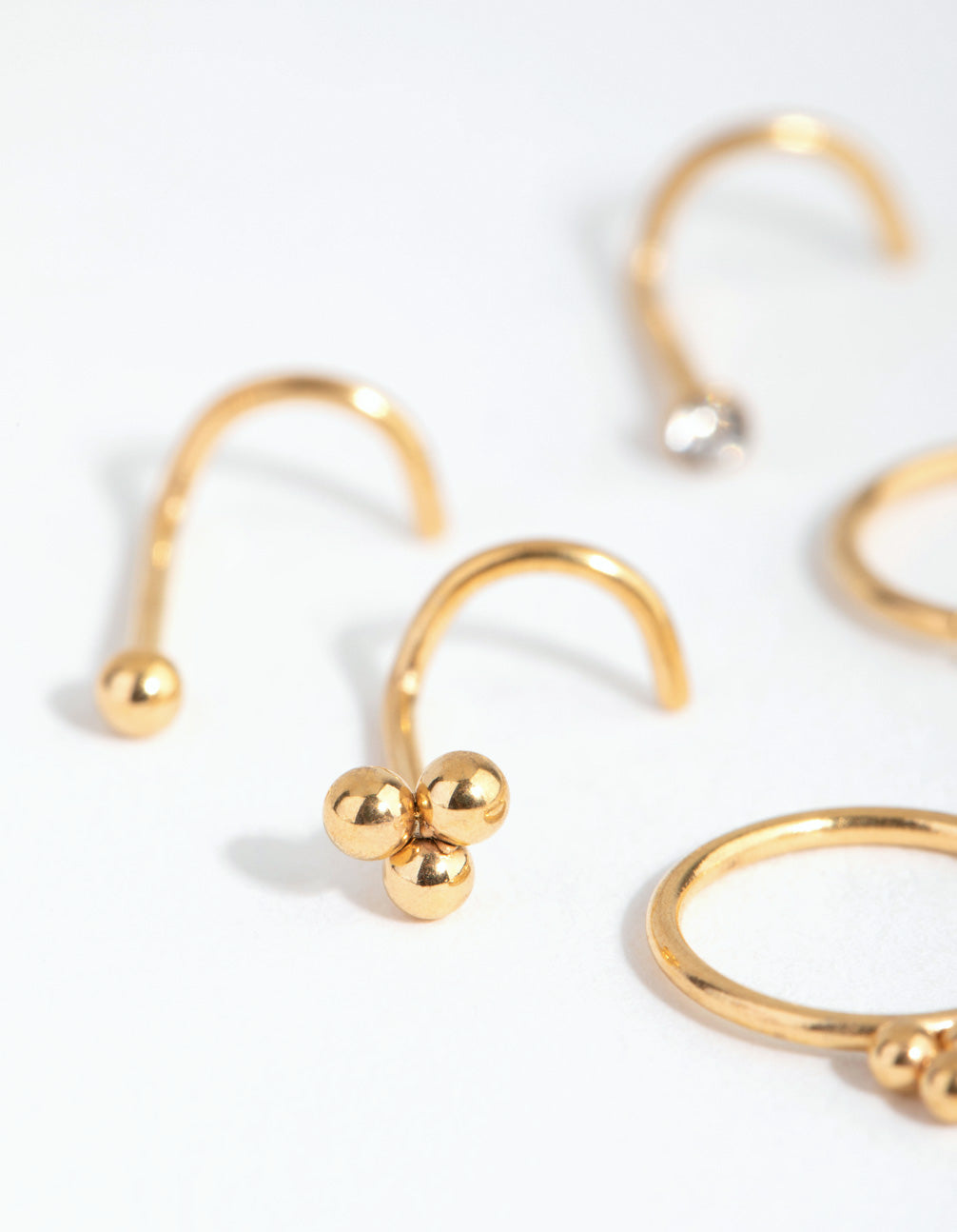 Gold Surgical Steel Ball Cluster Nose Stud 6-Pack