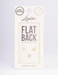 Gold Plated Surgical Steel Cubic Zirconia Floral Flat Back 3-Pack