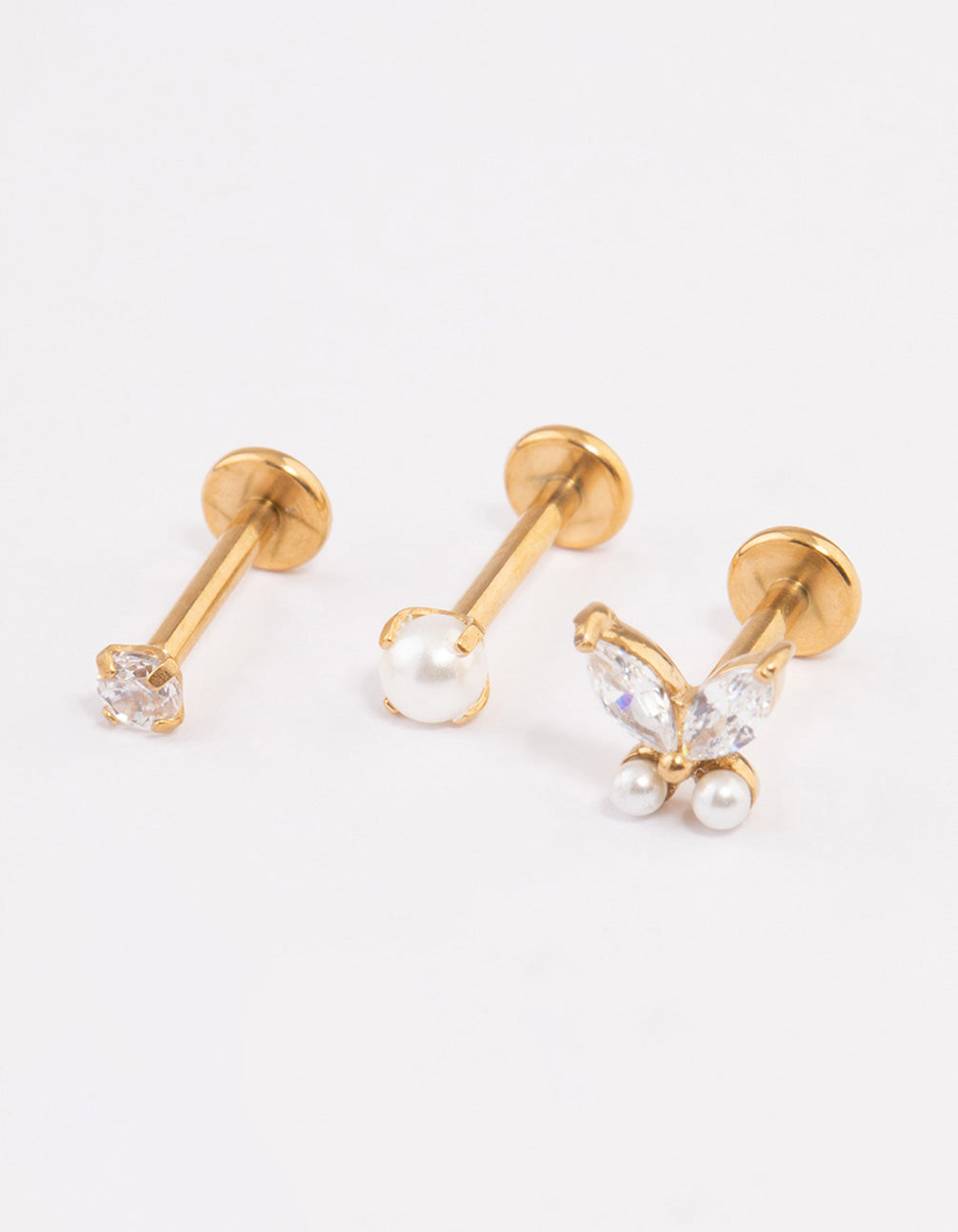 Invest in quality piercing jewellery that's perfect for everyday wear. Crafted from genuine surgical steel, jewellery from our Body Packs Collection are durable and safe for sensitive skin - what's not to love? This piercing pack contains three individual flat backs with simple, pearl features for an elegant touch. Each flatback stud in this pack features a threadless back, for a secure fit and the threadless back also makes it easier for the flat back to be removed.