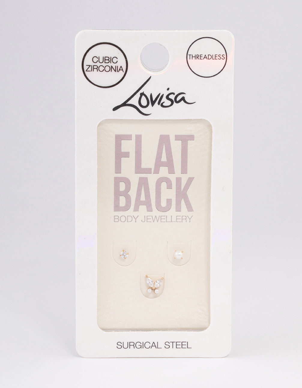- This piercing pack contains three individual flat backs with simple, pearl features for an elegant touch.