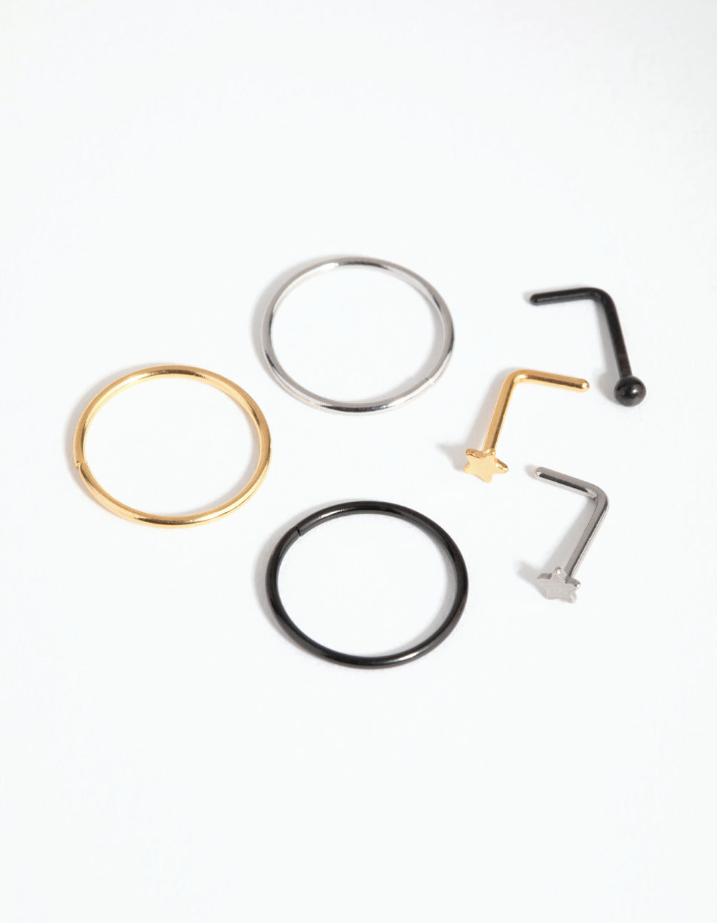 Surgical Steel Ball Star Nose Ring & Stud 6-Pack