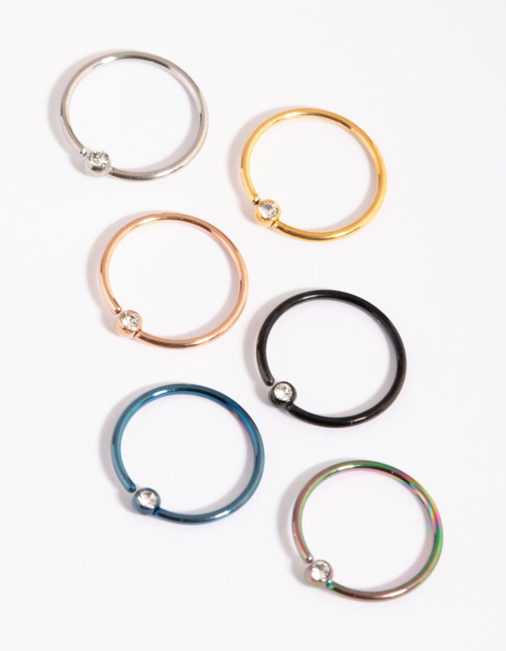 Surgical Steel Rainbow Diamante Nose Ring 6-Pack Surgical Steel Rainbow Diamante Nose Ring 6-Pack Surgical Steel Rainbow Diamante Nose Ring 6-Pack