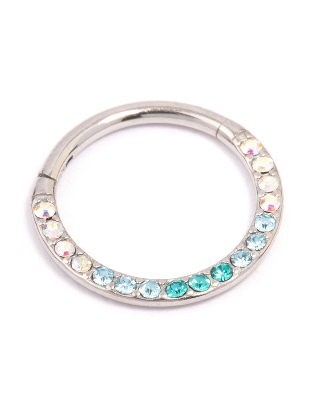 - This surgical steel clicker ring is a simple, versatile piercing with a teal, ombre-coloured finish for a stand-out look.