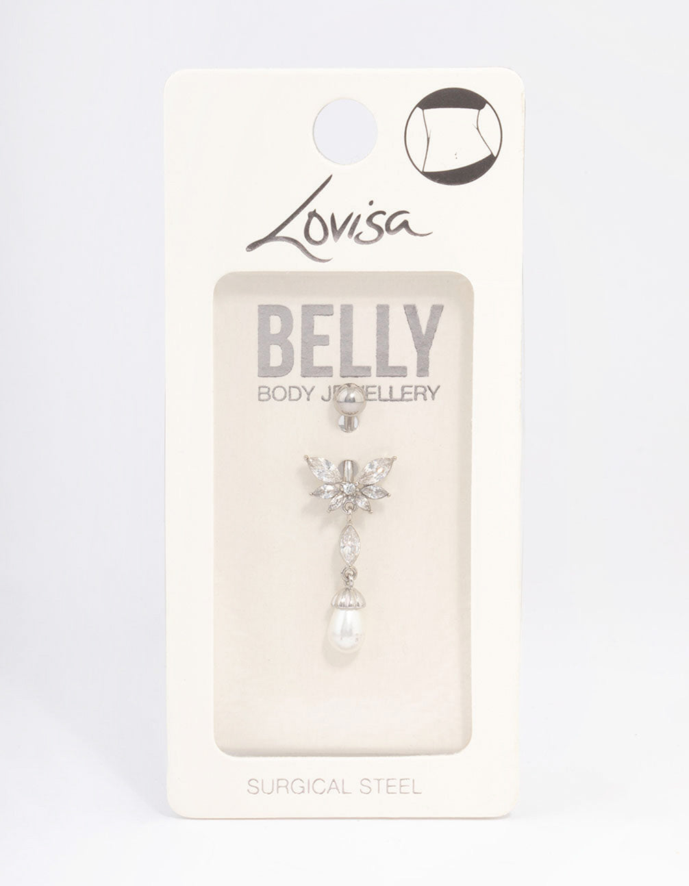 Surgical Steel Crystal Pearl Drop Belly Ring