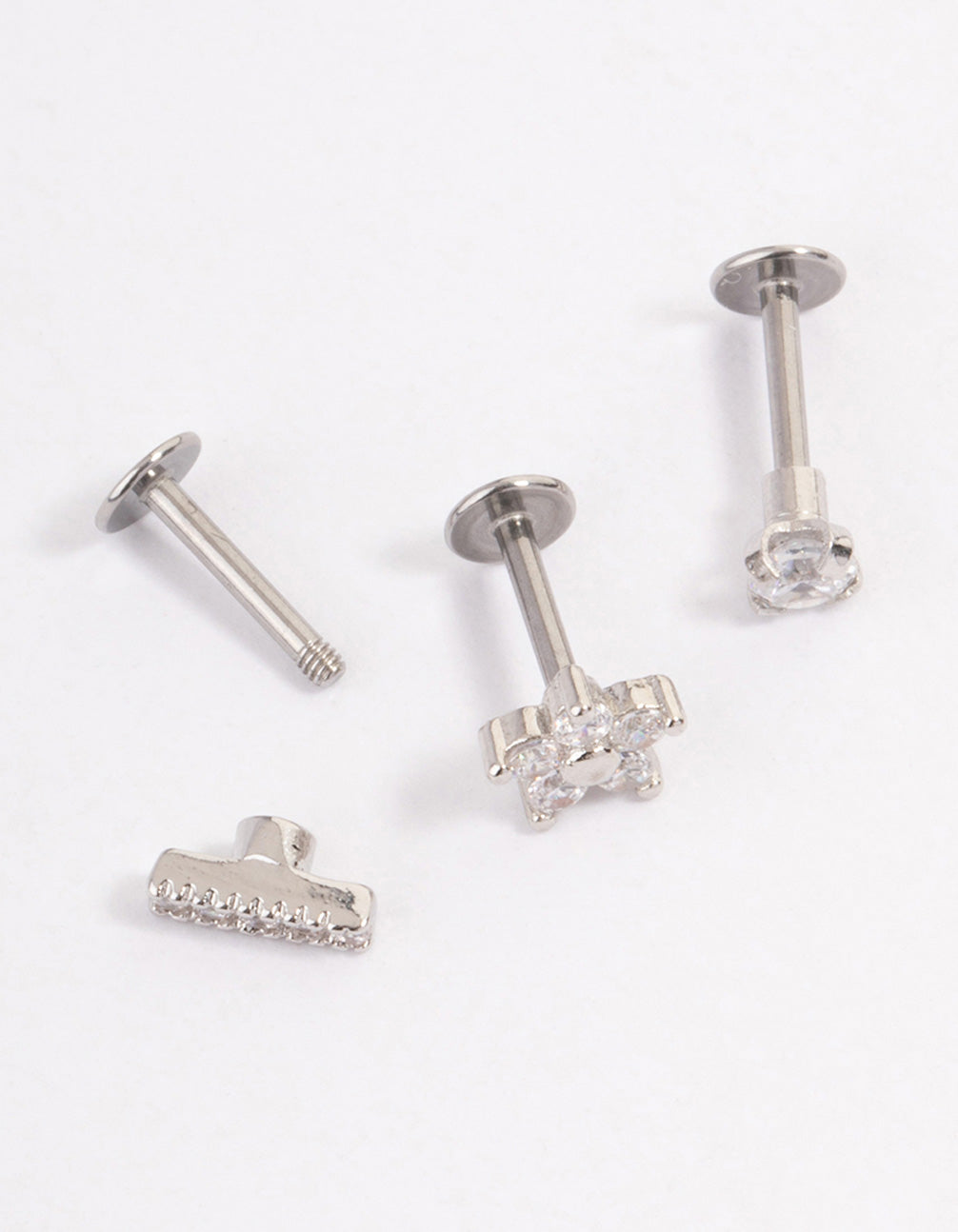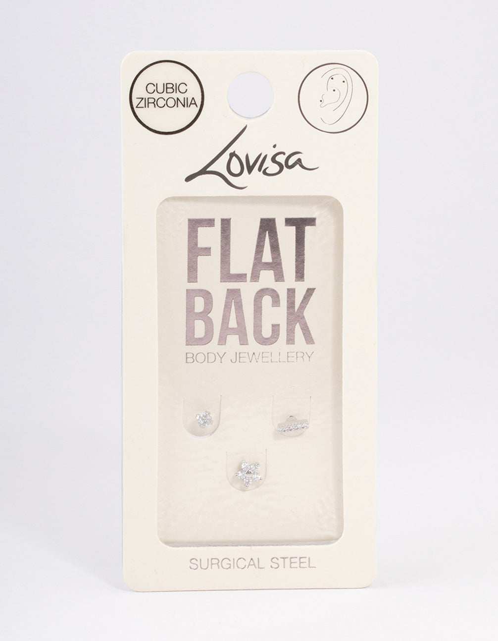 Surgical Steel Cubic Zirconia Floral Flat Back Pack