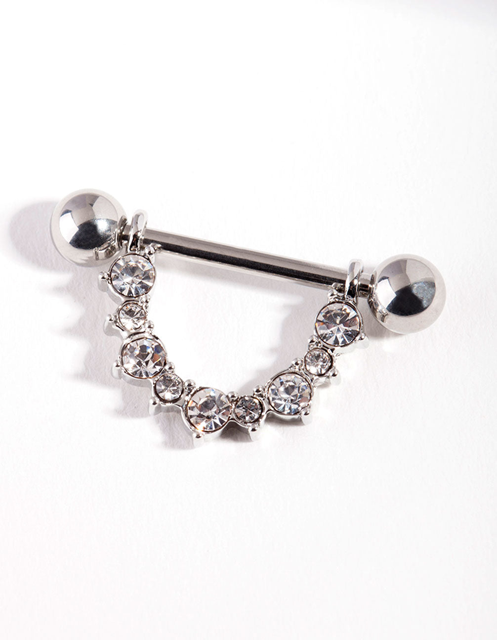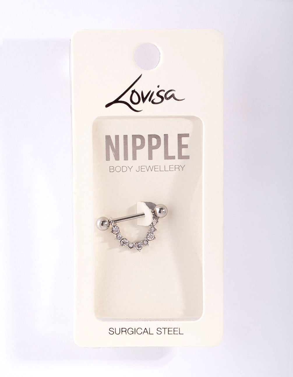 If you love piercings, the surgical steel body jewellery range from Lovisa is perfect for you. This silver-toned nipple bar features a curved diamante embellished design. Mix and match your body jewellery to coordinate with Lovisa accessories for a fashion-forward look!