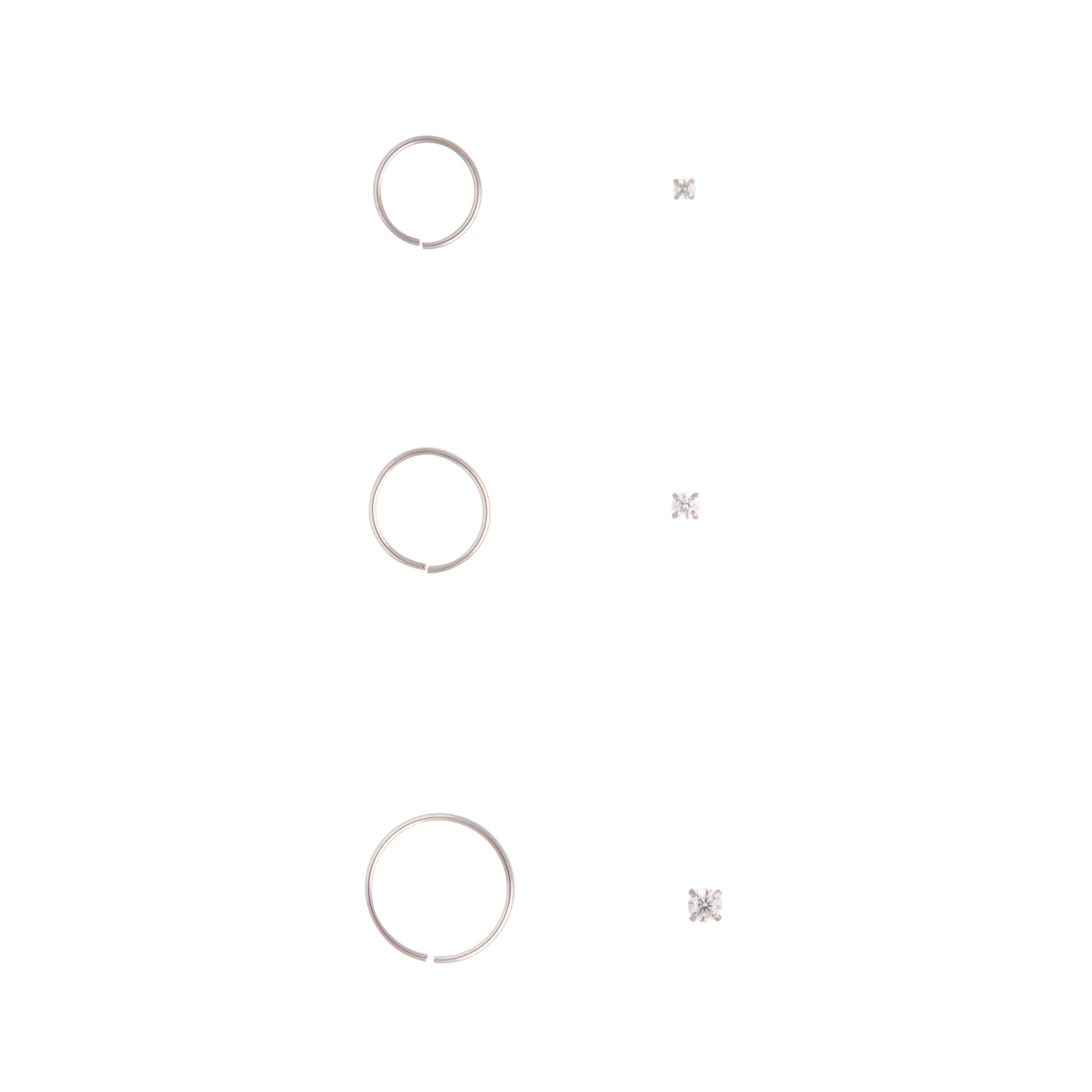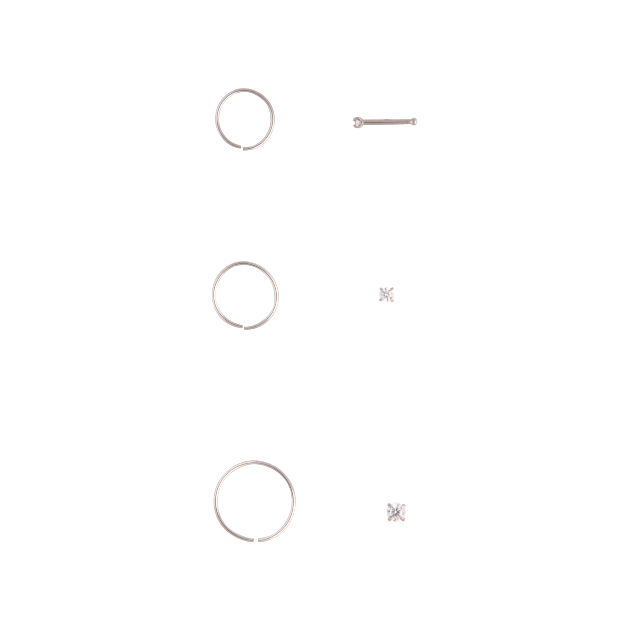Surgical Steel Cubic Zirconia Nose Ring 6-Pack