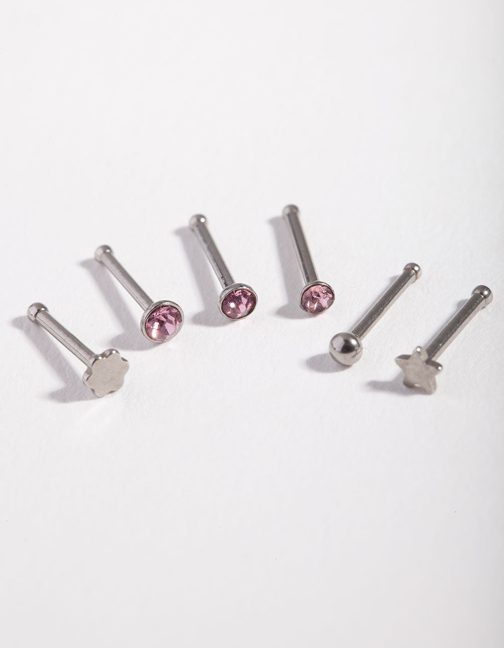 Mix up your look and show off the individual you are with Lovisa body jewellery! This pack includes six nose rings which are made from silver-toned surgical steel. They have a gauge of 16, and a length of 0.8mm. They have varying designs, including glittering pink diamantes and pretty star motifs.