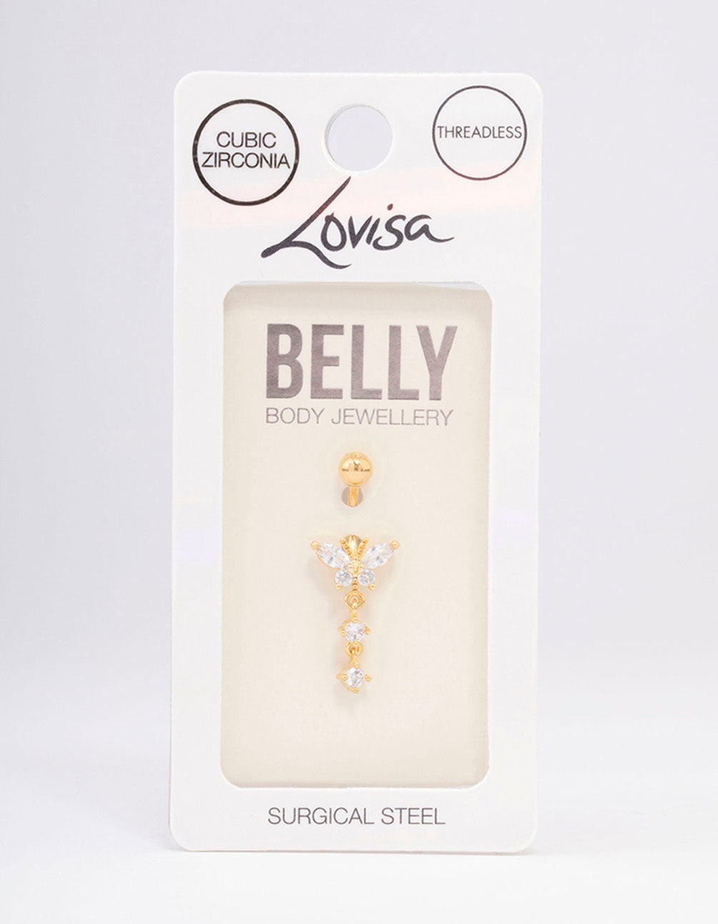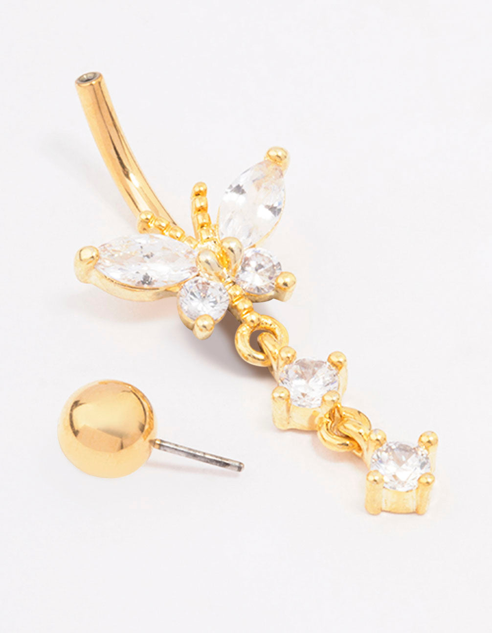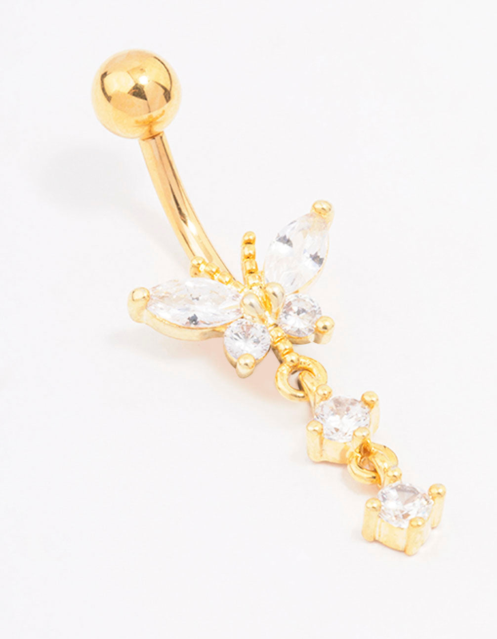 Gold Plated Surgical Steel Cubic Zirconia Butterfly Drop Belly Ring Gold Plated Surgical Steel Cubic Zirconia Butterfly Drop Belly Ring Gold Plated Surgical Steel Cubic Zirconia Butterfly Drop Belly Ring