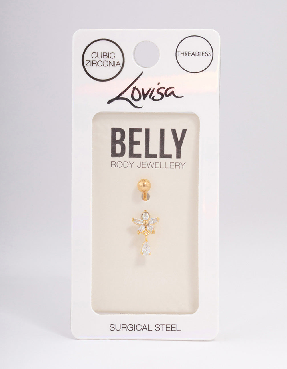 Invest in quality piercing jewellery that's perfect for everyday wear. Crafted from genuine surgical steel, jewellery from our Belly Body Packs Collection is durable, long-lasting and safe for sensitive skin. This belly bar features a cubic zirconia flower design. This belly bar features a threadless style, for a secure fit and also makes it easier for stud to be removed.