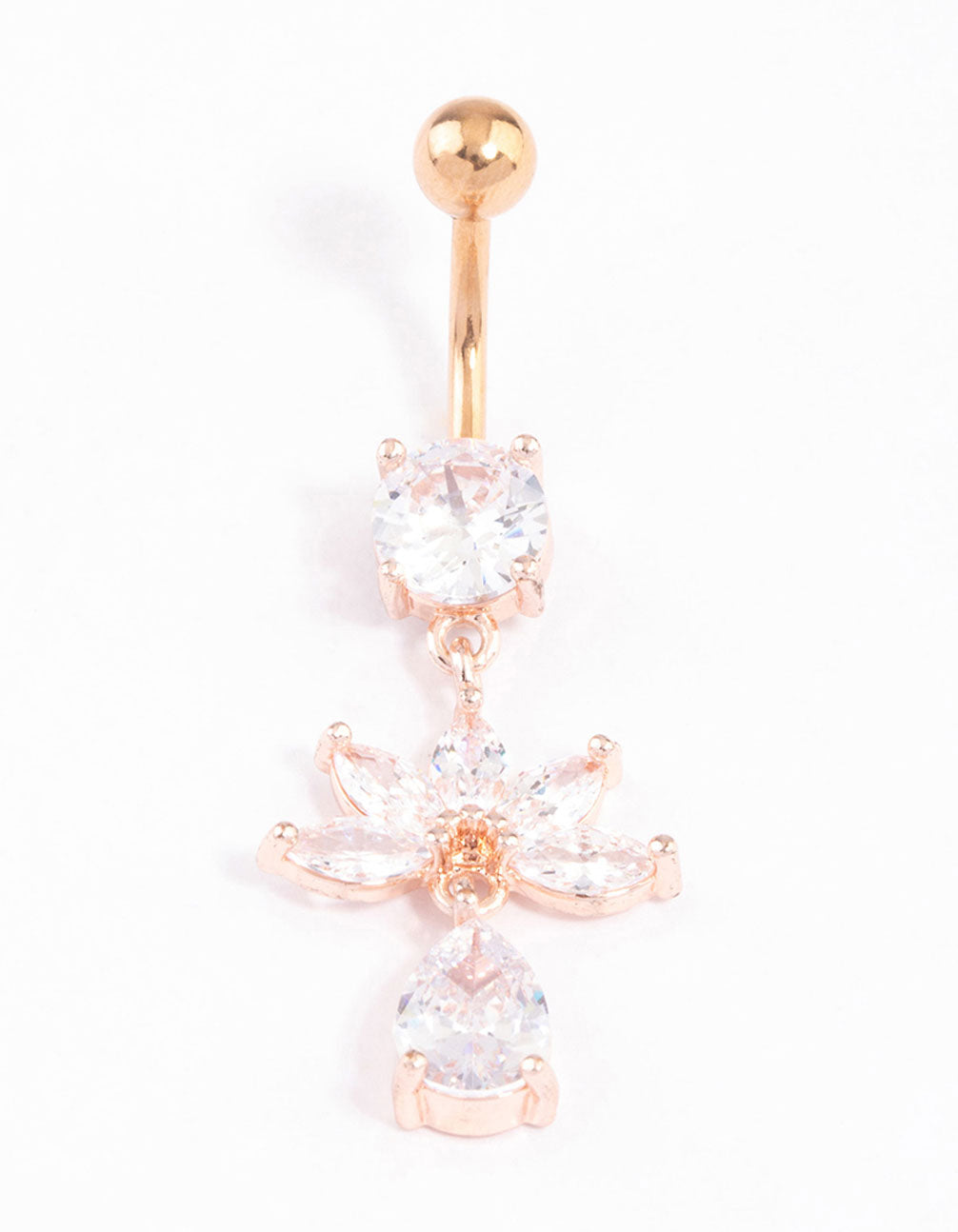 Rose Gold Plated Surgical Steel Cubic Zirconia Fan Drop Belly Ring Rose Gold Plated Surgical Steel Cubic Zirconia Fan Drop Belly Ring
