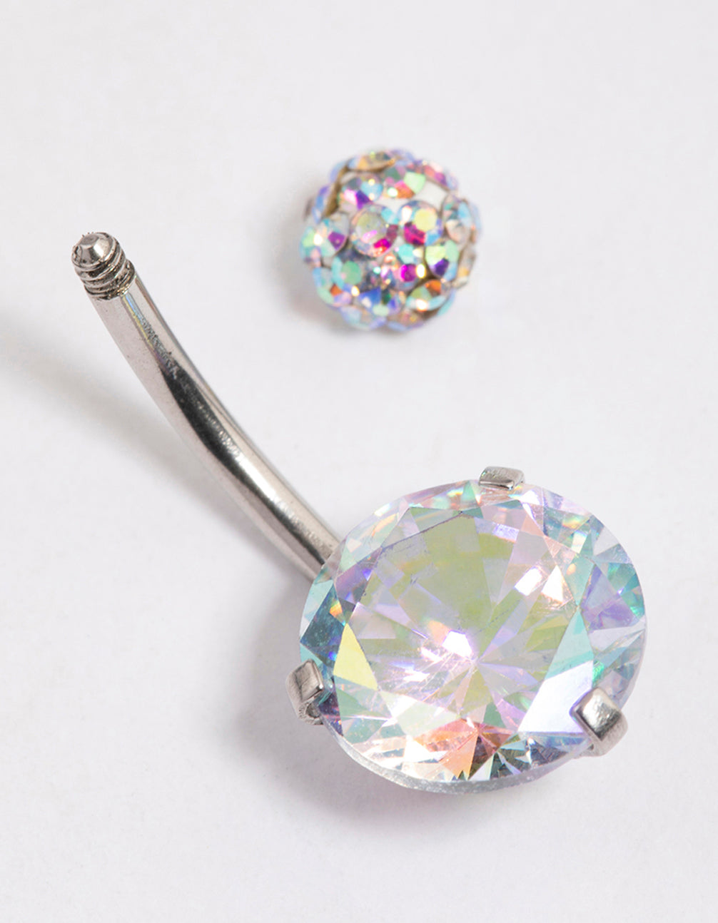 Surgical Steel Cubic Zirconia Round Claw Belly Ring