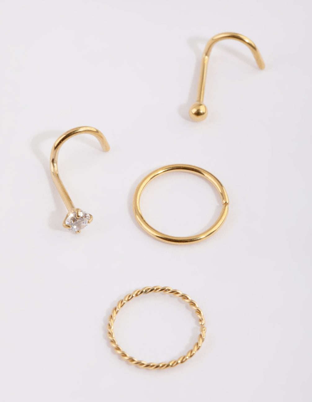 Gold Plated Surgical Steel Diamante Twisted Nose Ring 4-Pack