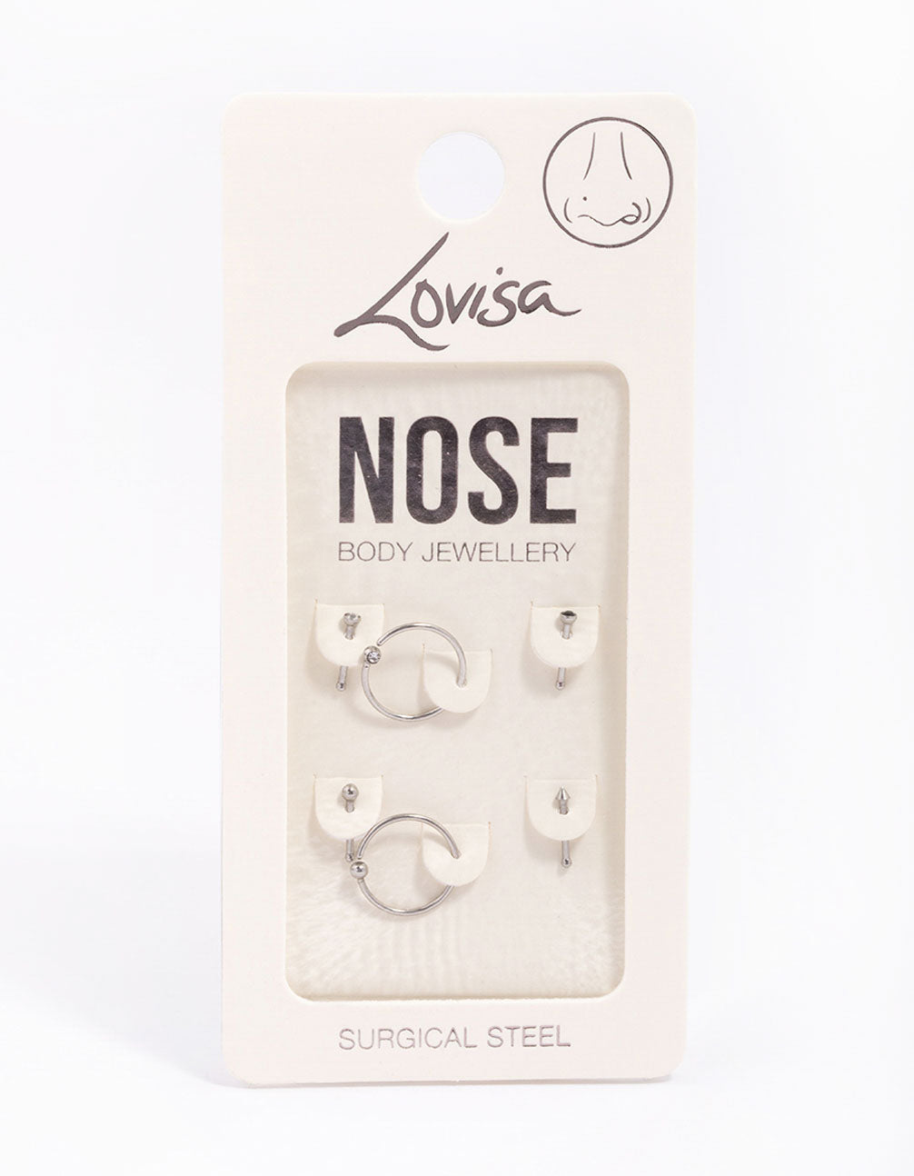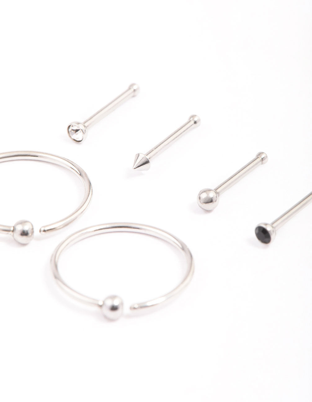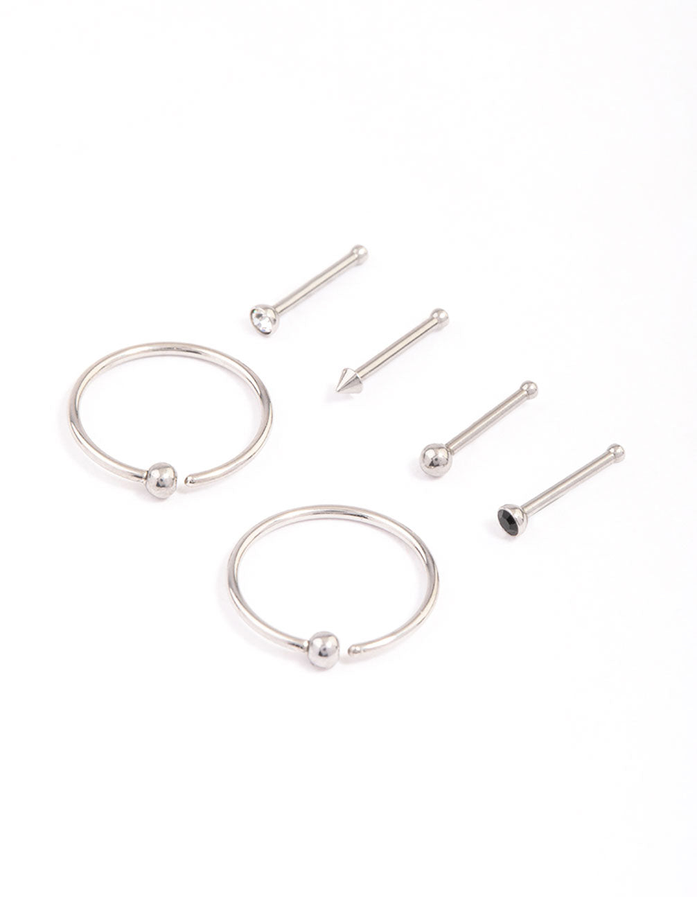 Surgical Steel Pointed & Ring Nose Piercing 6-Pack