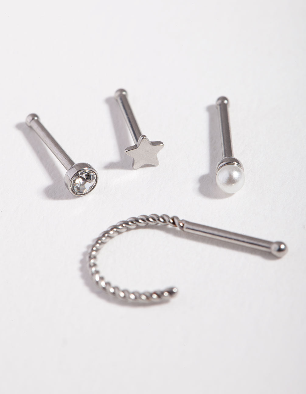 Surgical Steel Pearl Star Nose Stud 4-Pack