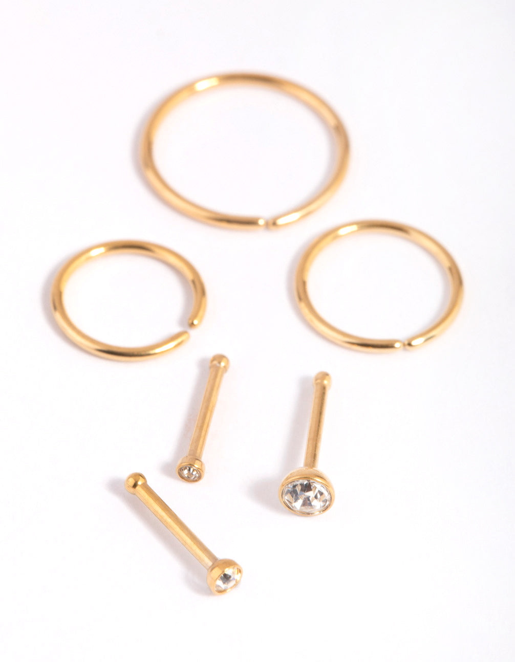 If you've got a nose for style, these are the studs for you! This pack features a variety of designs, change them up to suit your mood! They're made with premium titanium, so they're gentle on skin and comfortable for daily wear. The gauge measures 20G/0.8mm.