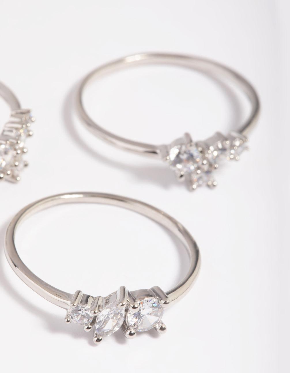 Silver Plated Cubic Zirconia Cluster Ring Stack Pack