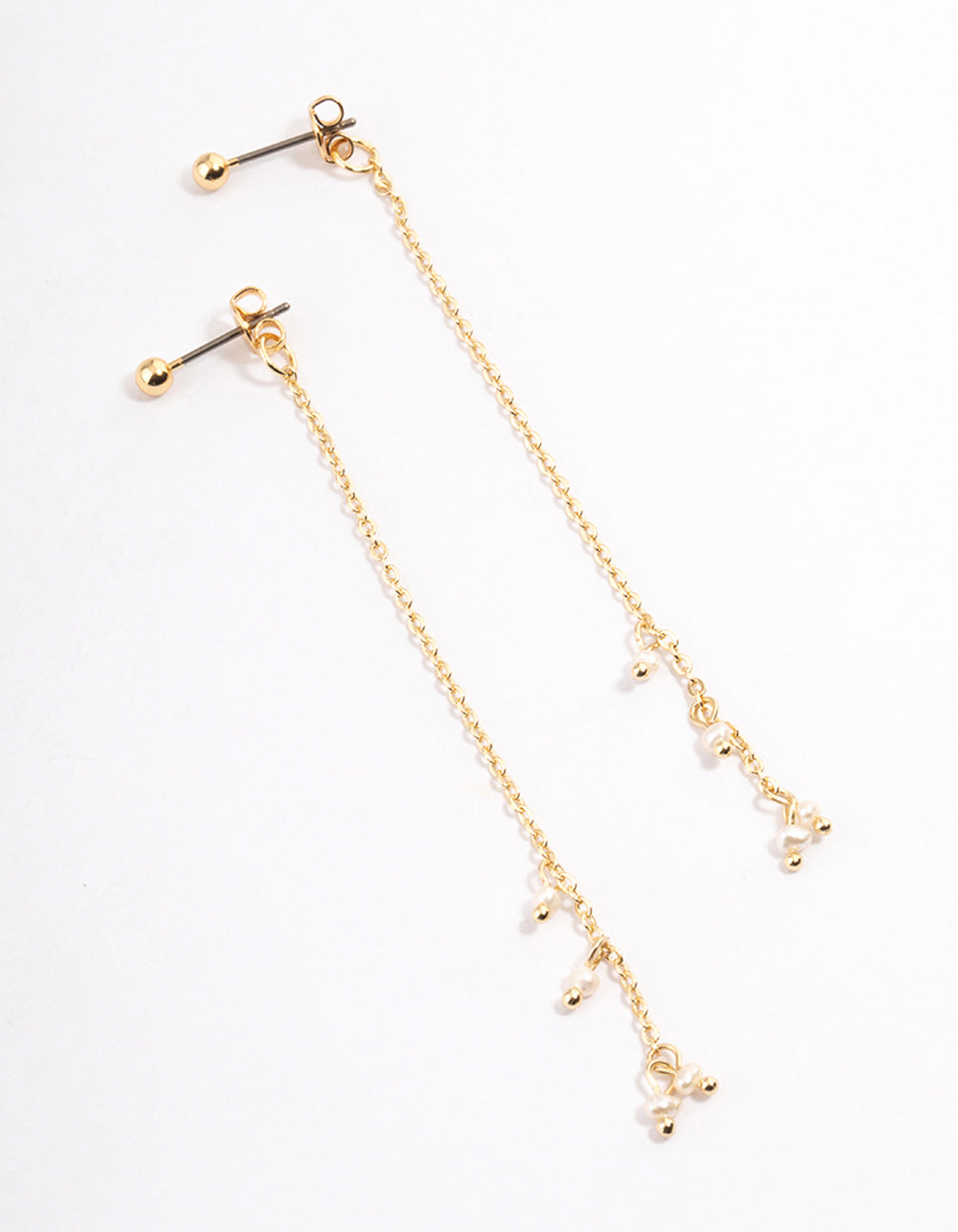 Gold Plated Mini Freshwater Pearl Chain Drop Earrings