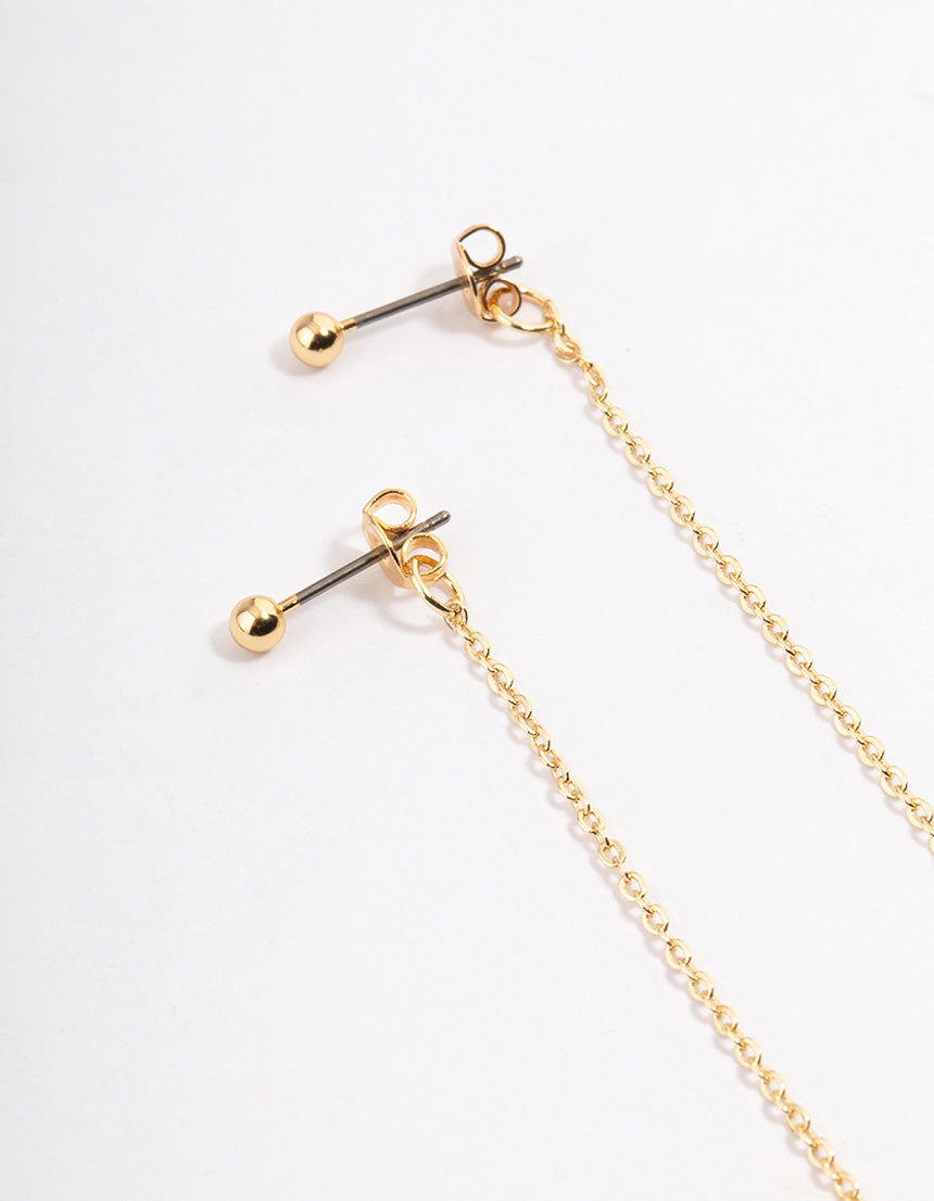- These drop earrings are plated with real gold and feature a delicate chain detail, encrusted with freshwater pearls for an elegant look.
