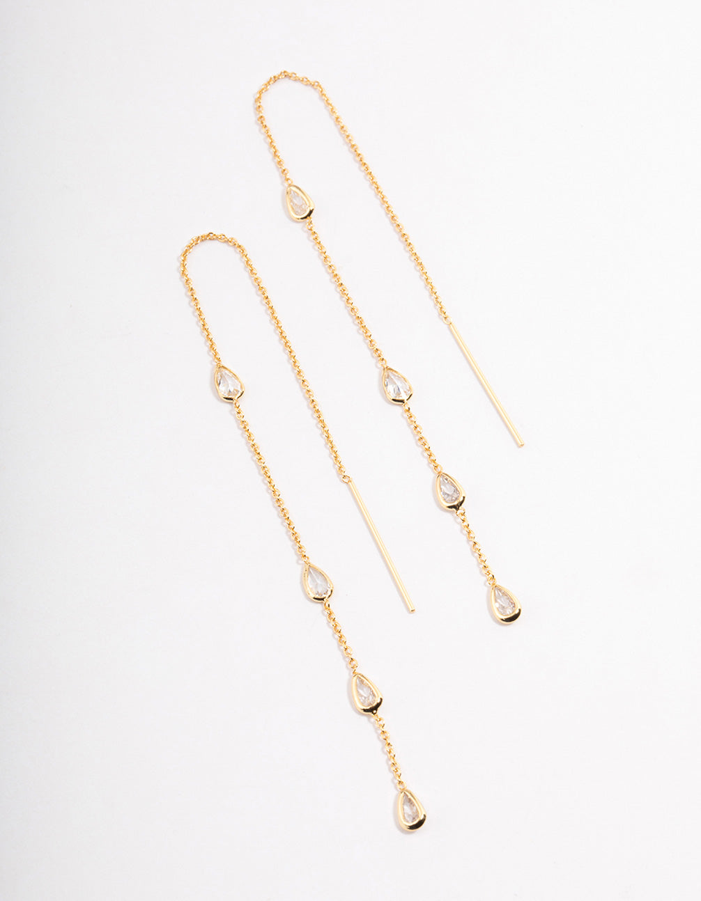 These thread-through earrings are plated with real gold and feature a station-style chain for a dainty finish.