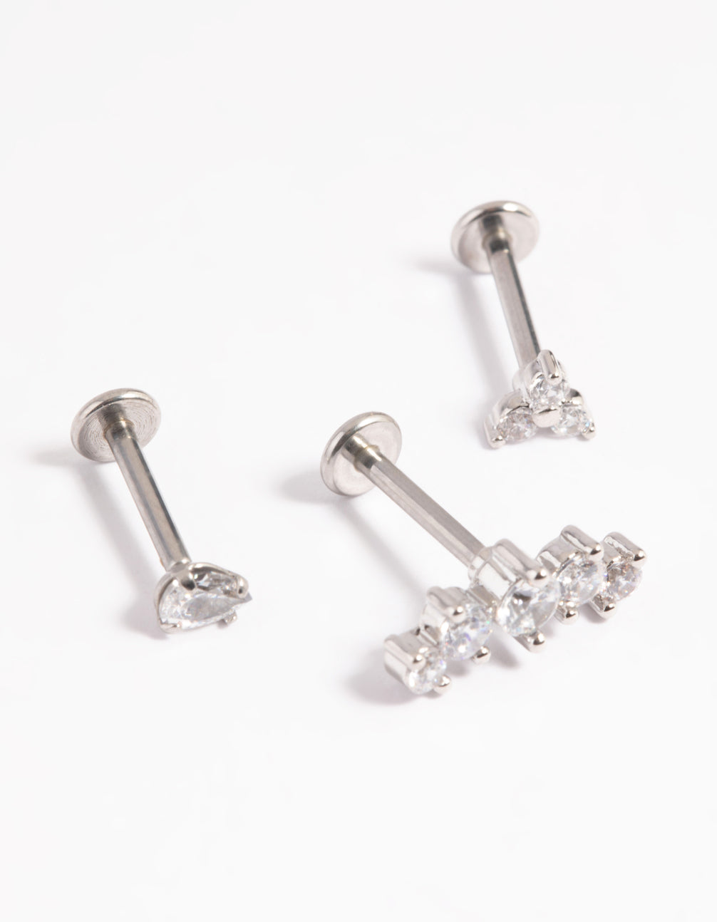Show off your individuality with Lovisa body jewellery! Our premium body jewellery is made with quality surgical steel to avoid skin irriation and ensure pieces are comfortable for day-to-day wear. This earring pack includes an array of earrings with flat, smooth backings which are suitable for cartilage piercings and ideal for ear stacking.