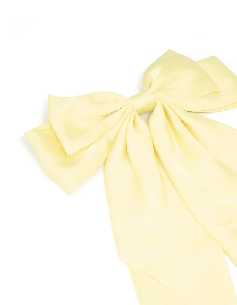 Add a touch of charm to your outfit with this Butter Yellow Satin Fabric Bow Clip. This clip features a soft, satin bow in a cheerful butter-yellow hue, perfect for brightening up any look. Whether you're styling a sleek ponytail, pinning back loose waves, or accessorising an elegant updo, this bow clip is as versatile as it is stylish. Ideal for casual outings, garden parties, or even adding a playful twist to your workwear, it’s a must-have for any hair accessory collection. Pair it with floral dresses for a sunny vibe or dress it down with your favourite jeans-and-tee combo. This bow clip is the perfect way to add a pop of colour and a touch of sophistication to your hairstyle.
