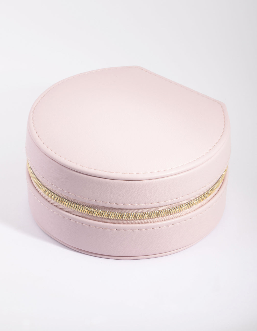 This jewellery box features a circular design with a compact mirror in the centre — perfect for accessorising on the go!