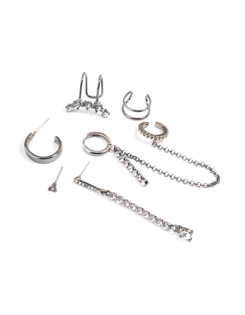 Gunmetal Clear Stone Bar Stud Earring Pack
