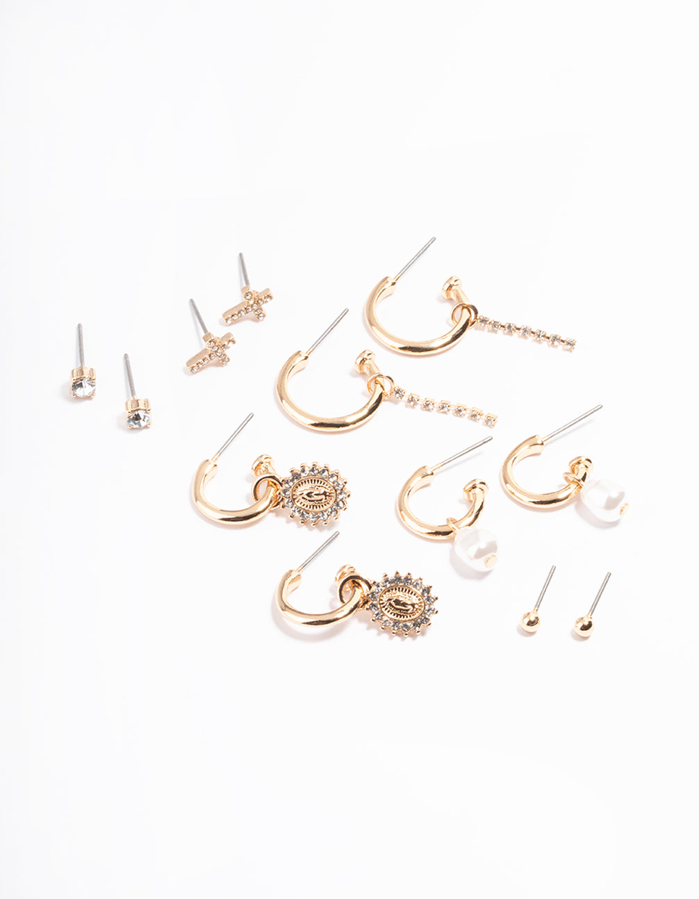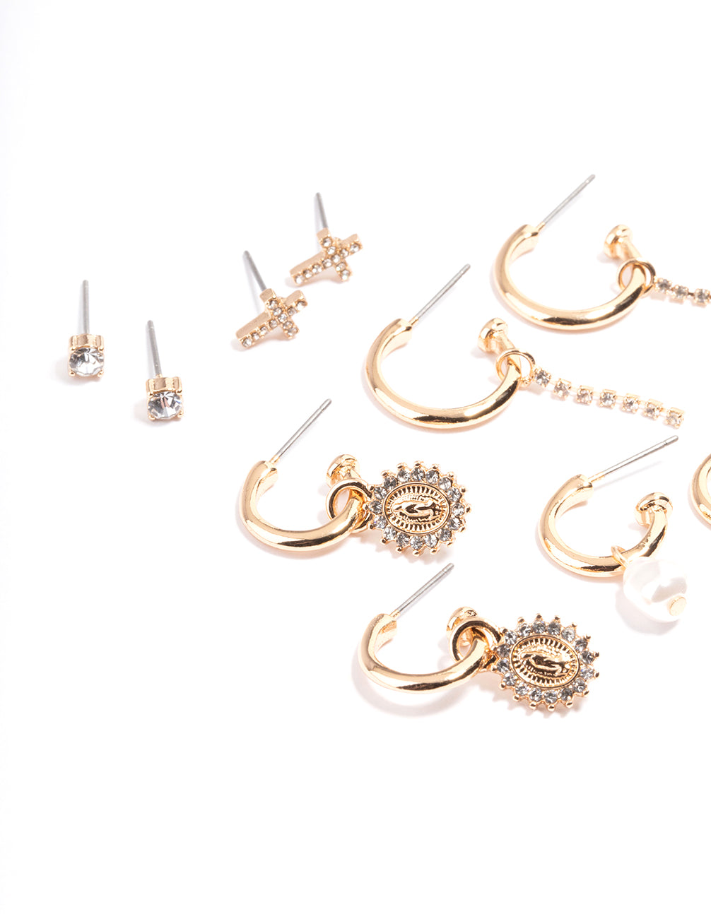 Gold Diamante Cross Mixed Stud & Earring Pack
